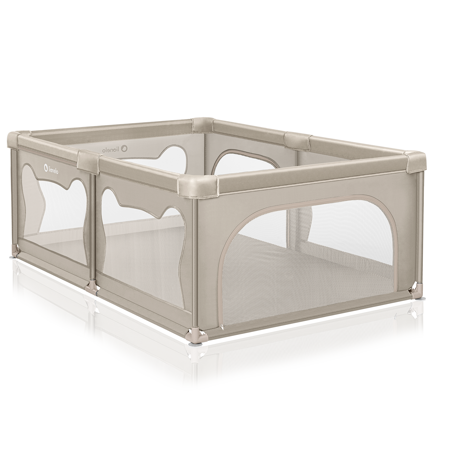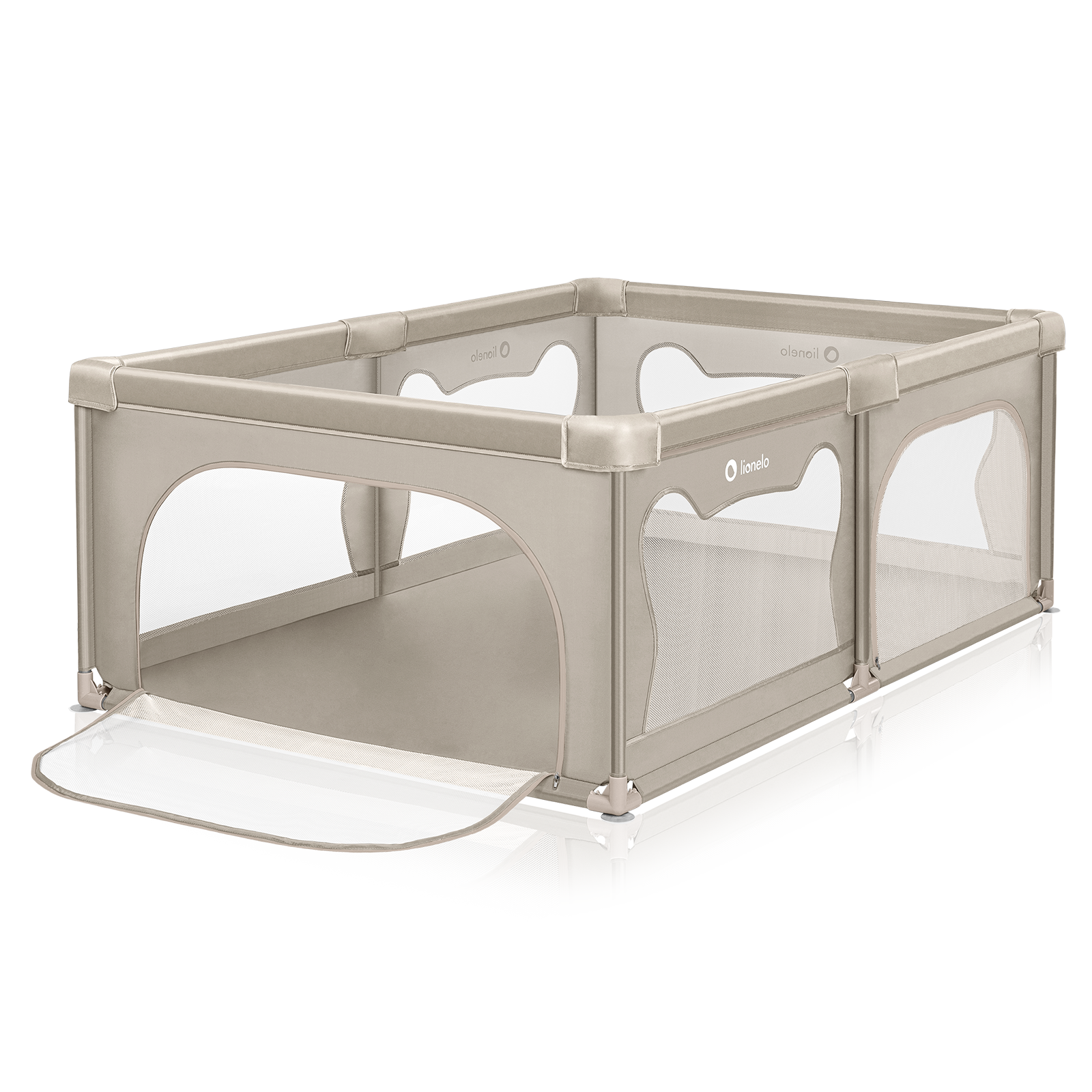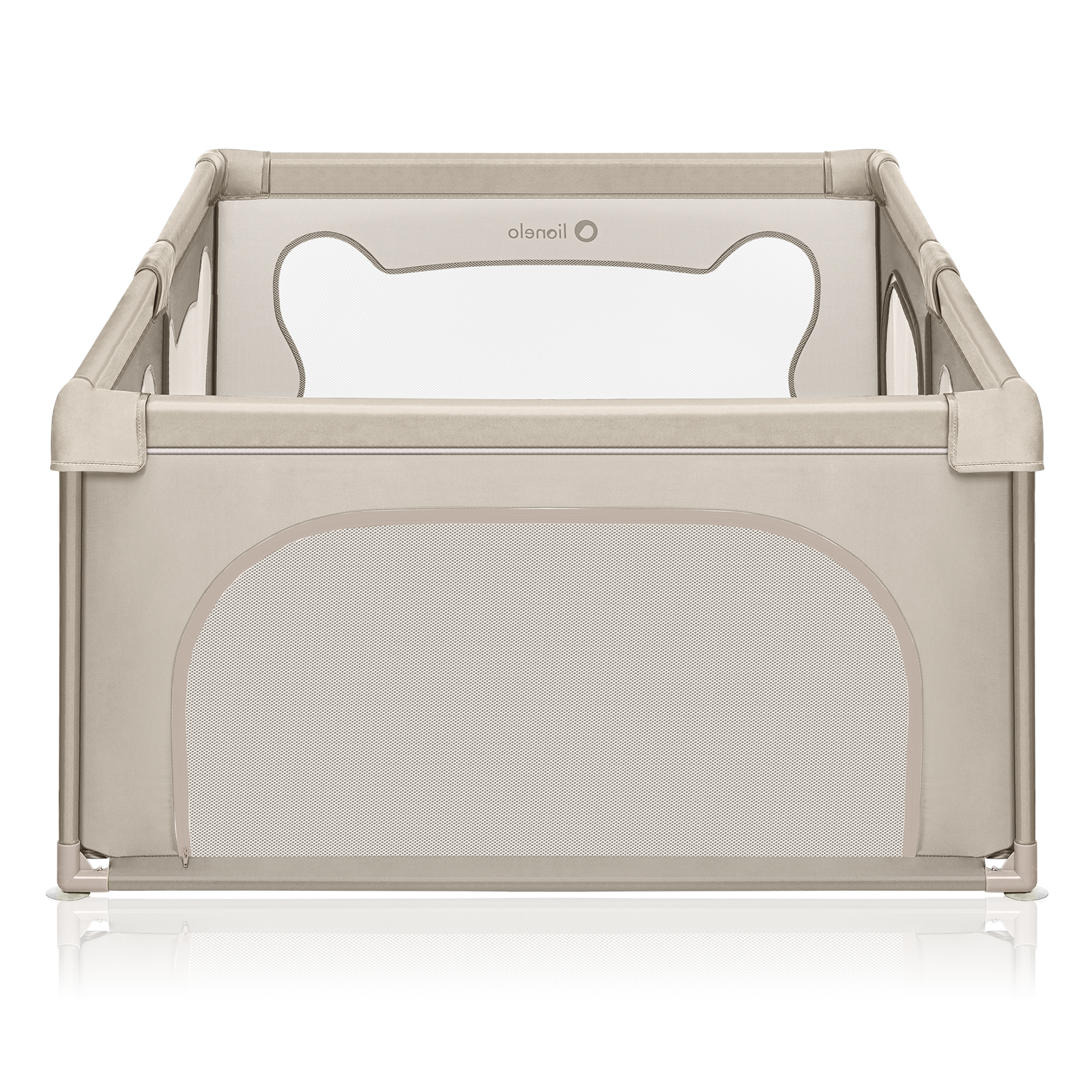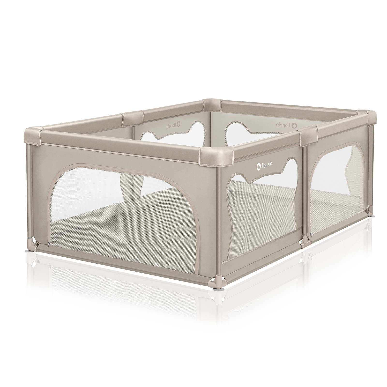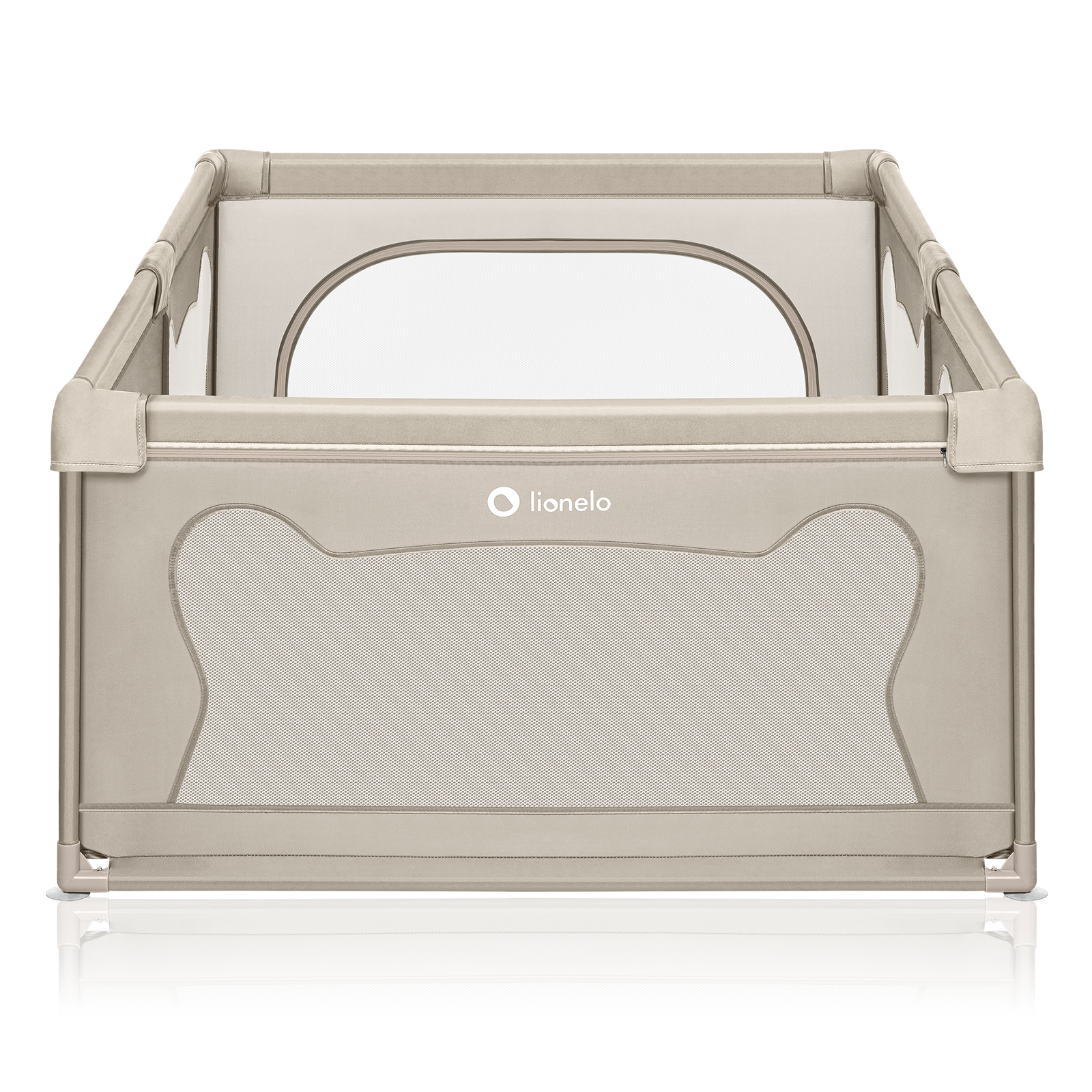 Tarc de joaca copii, Lionelo, Willow, 127 x 187 cm, Pliere compacta, Include geanta de transport, Din plasa, Cu doua intrari laterale si fermoar, Cu ventuze pentru stabilitate, Conform cu EN 12227:2010, Bej