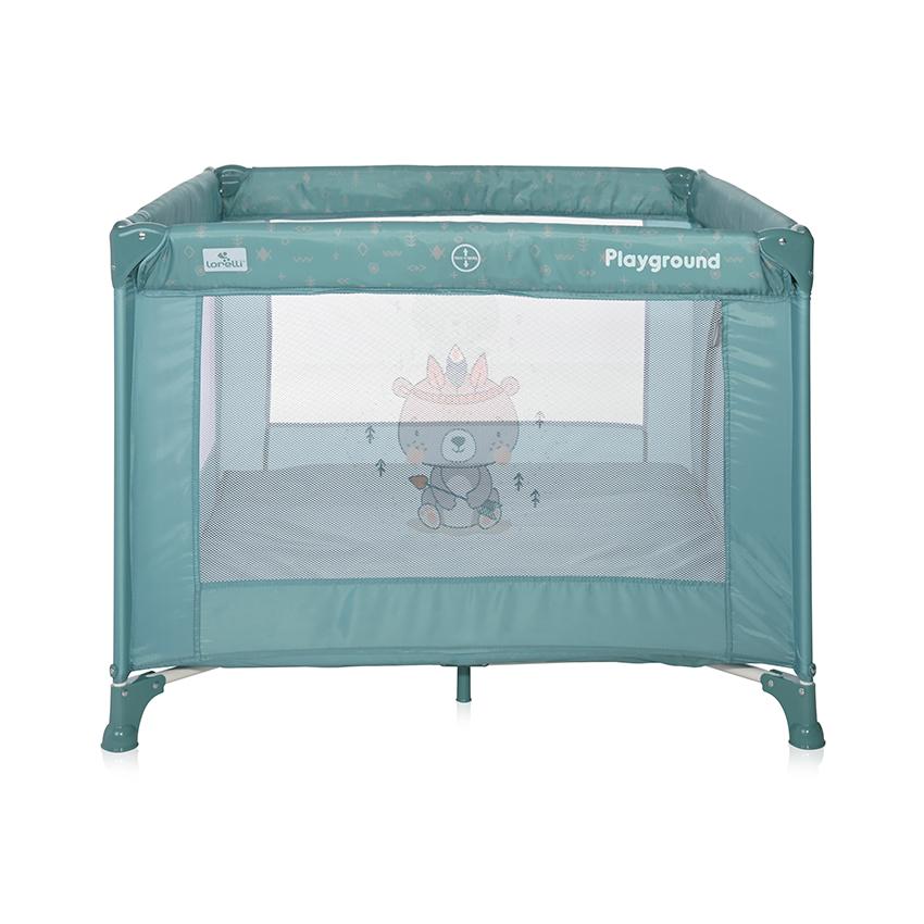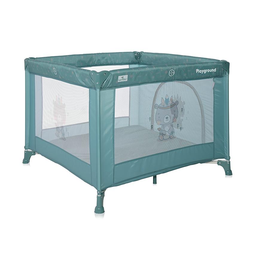 Tarc de joaca, Lorelli, Playground, 100 x 100 cm, 0-36 luni, salteluta, usa cu fermoar, geanta transport, mecanism dublu de siguranta, Artic Indian
