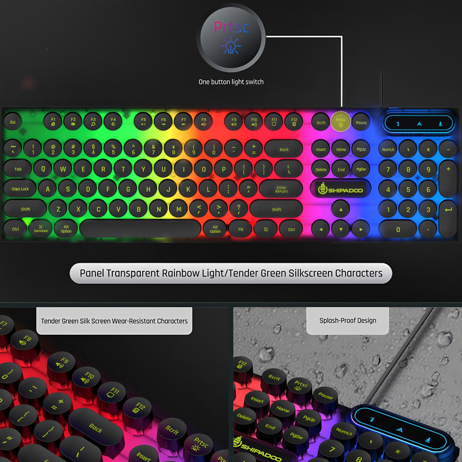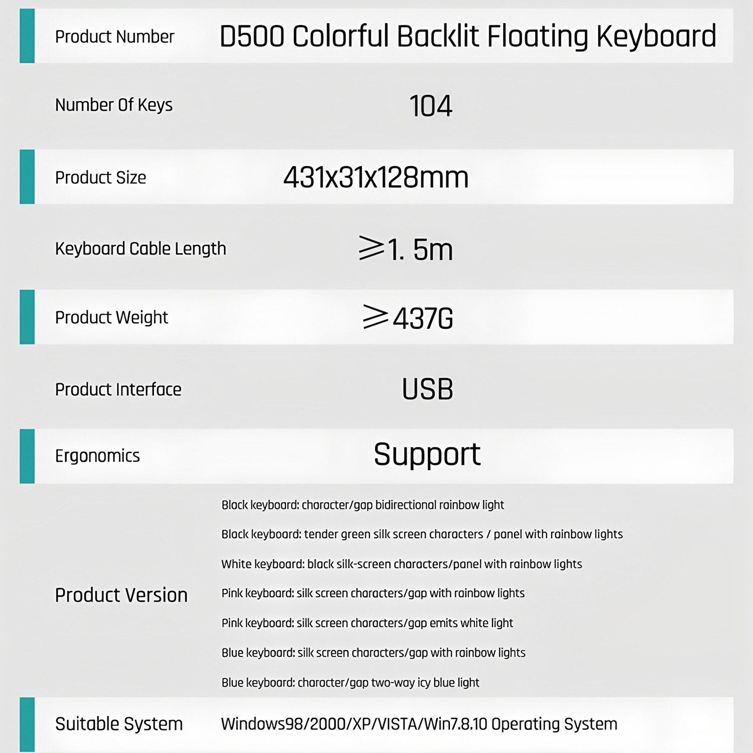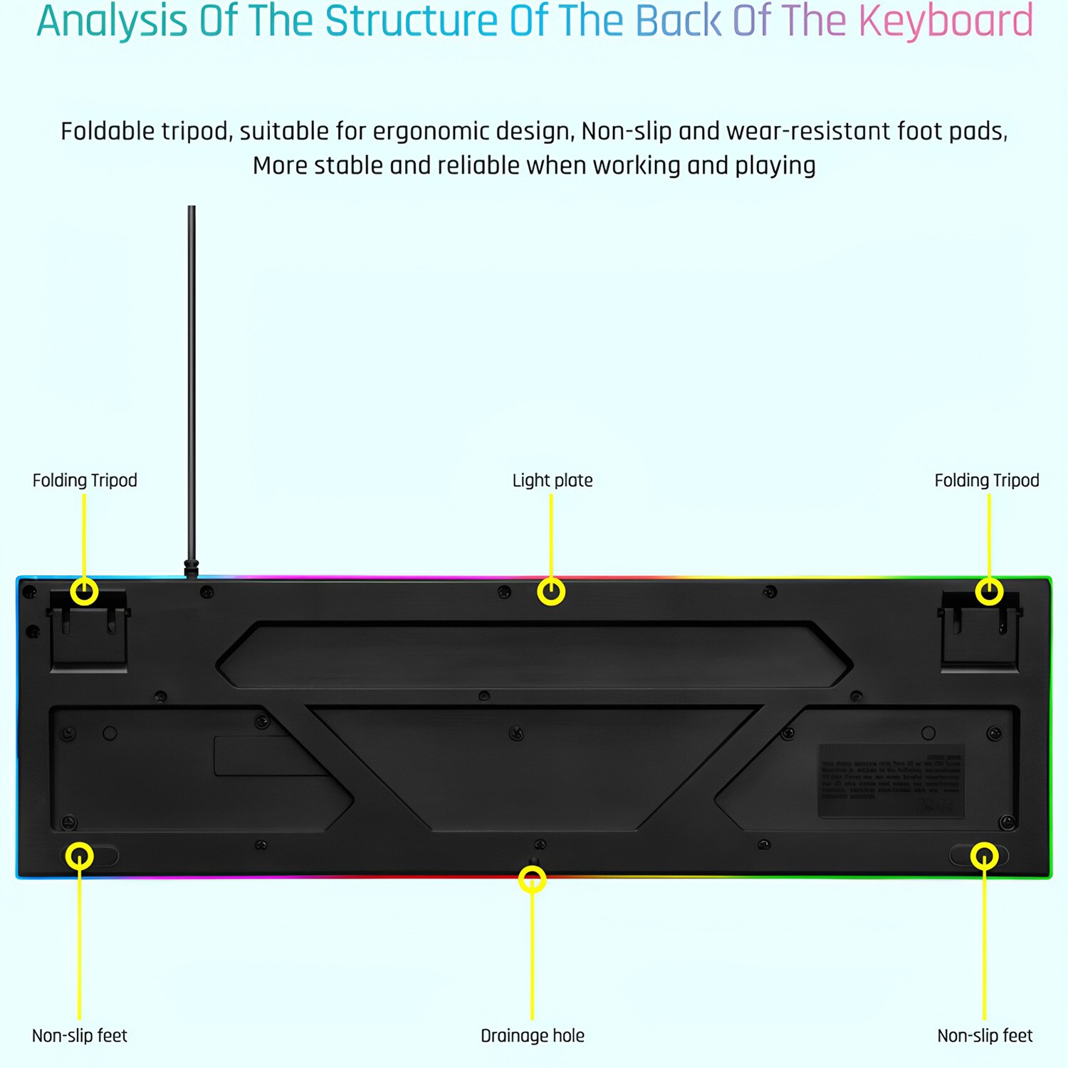 Tastatura Gaming BOMSTOM, 104 Taste, Iluminare Colorata, Design Ergonomic, Negru, 431x31x128mm