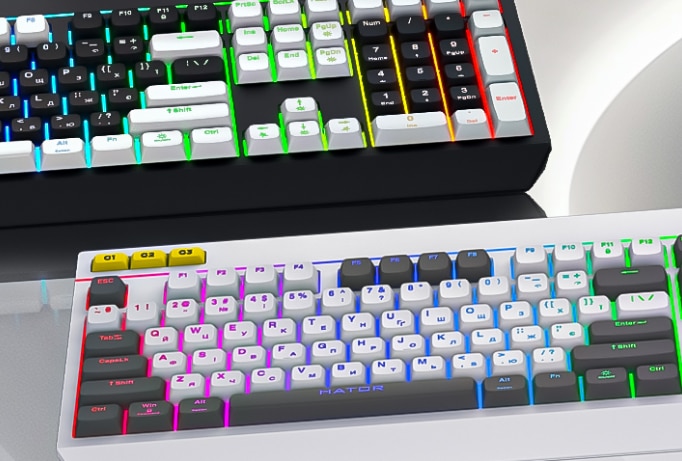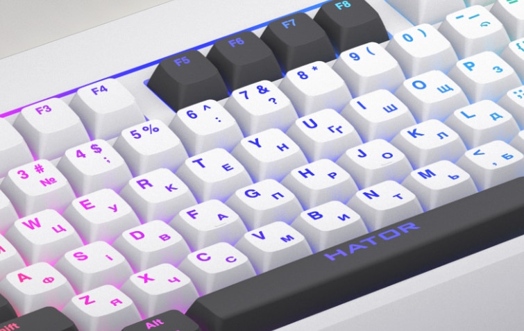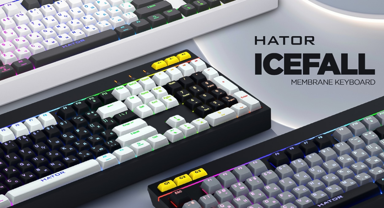 Tastatura gaming mecanica cu fir Hator Icefall, conectivitate USB, iluminare RGB, tip switch membrana, material taste ABS cu gravare laser si acoperire UV, Alb