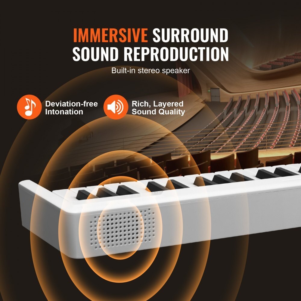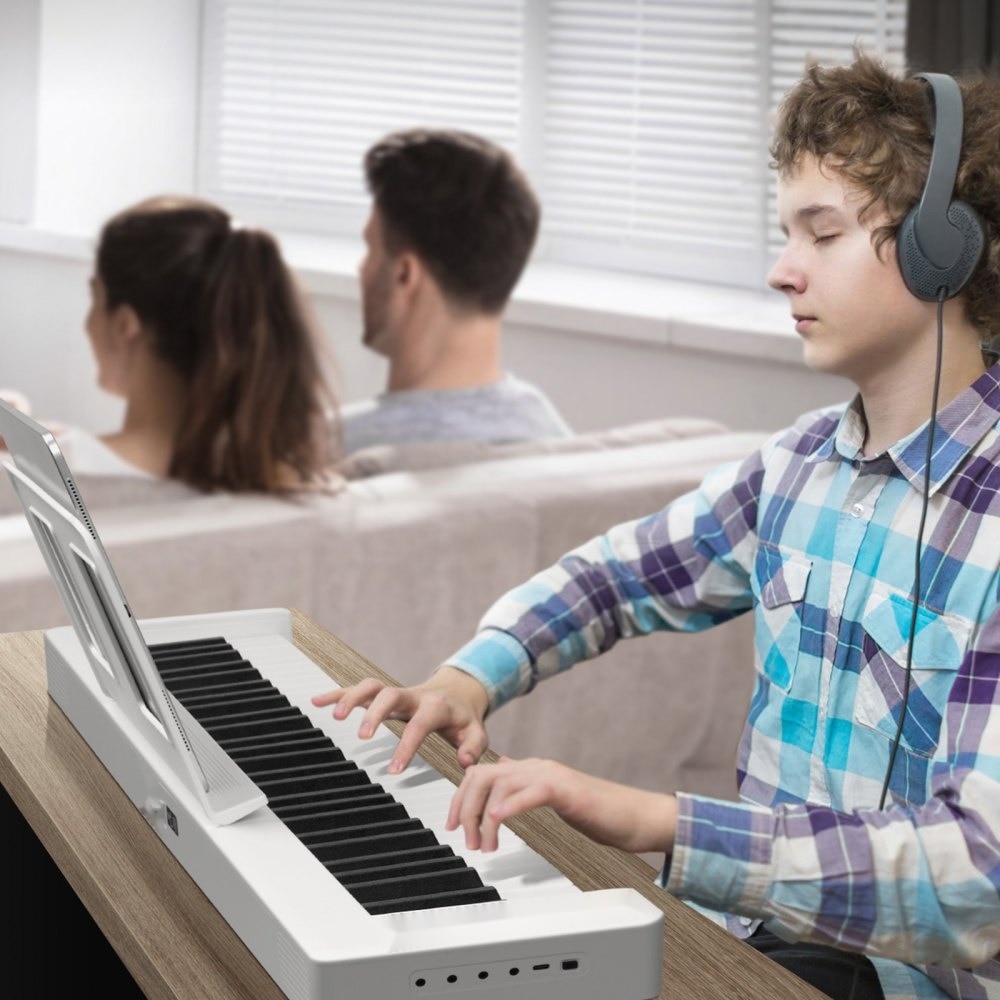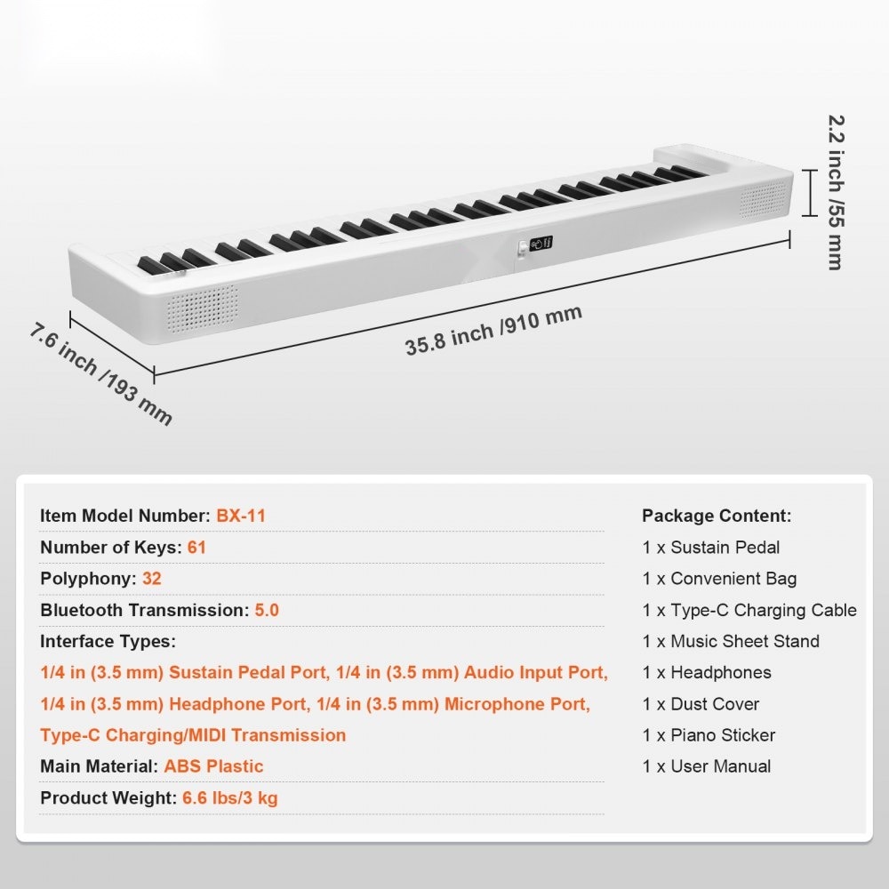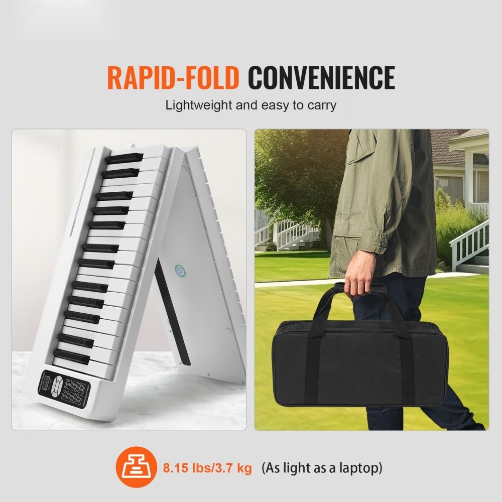 Tastatura Pliabila pentru Pian, 61 Clape, Portabila, cu Bluetooth, MIDI, Culoare Alba