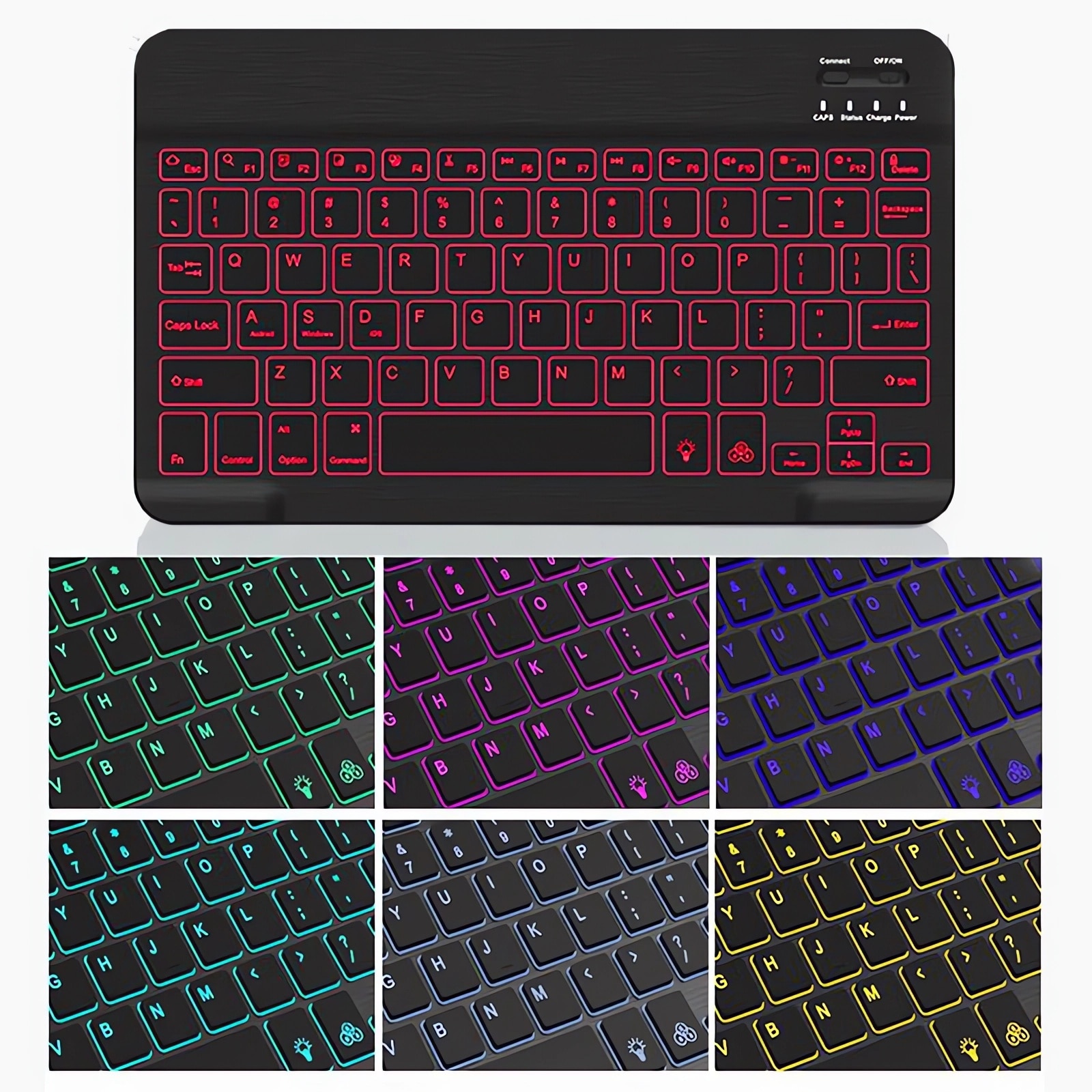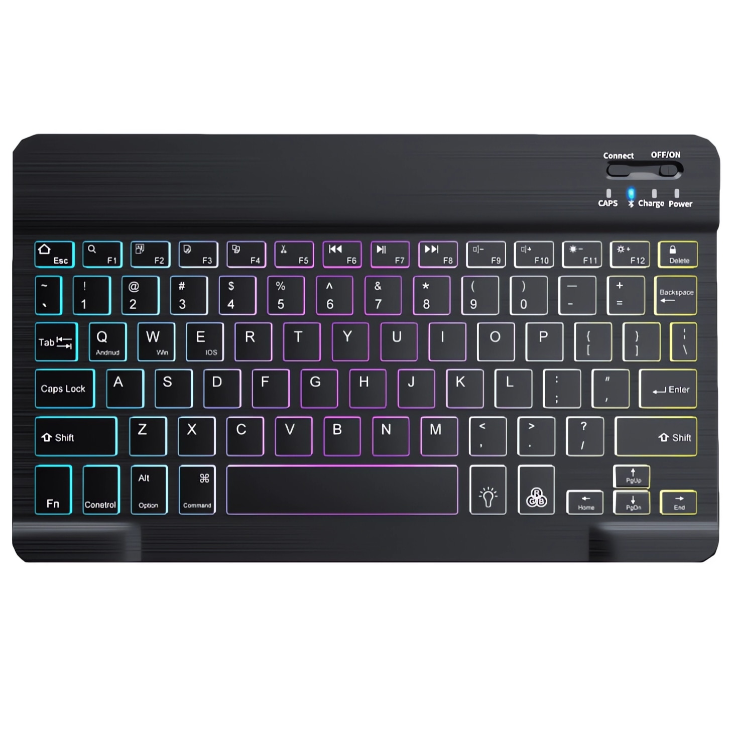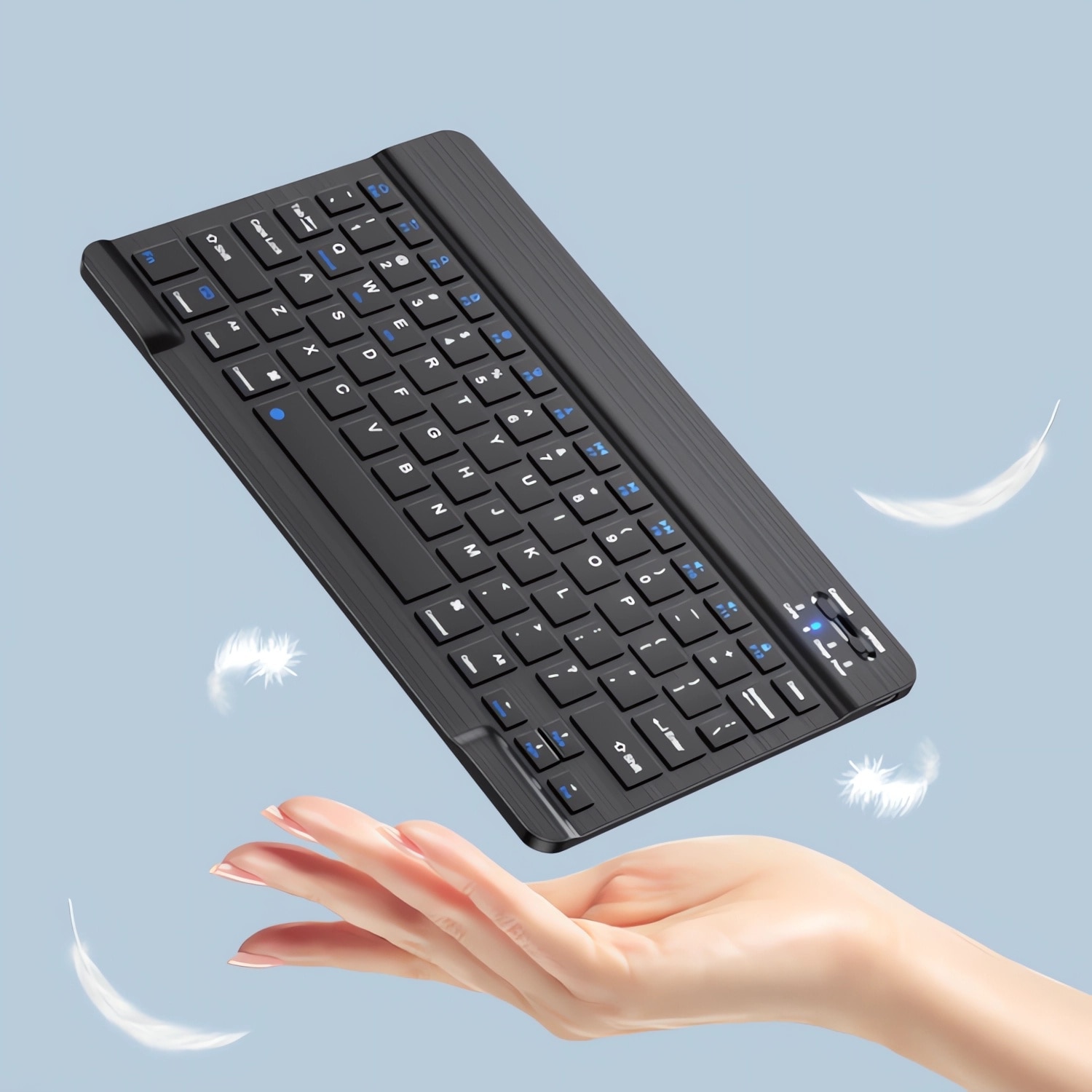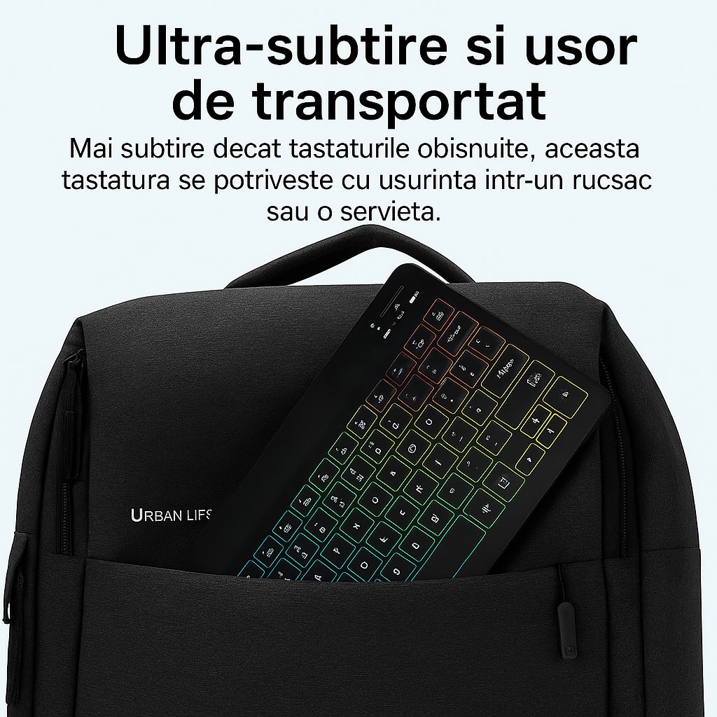 Tastatura Wireless Bervolo® BackLight SlimCharge, Reincarcabila, Bluetooth, Ultra-Subtire, 78 Taste, Multi-Device, Compatibila Windows/Mac/Android/iOS, Negru
