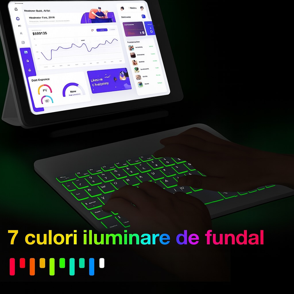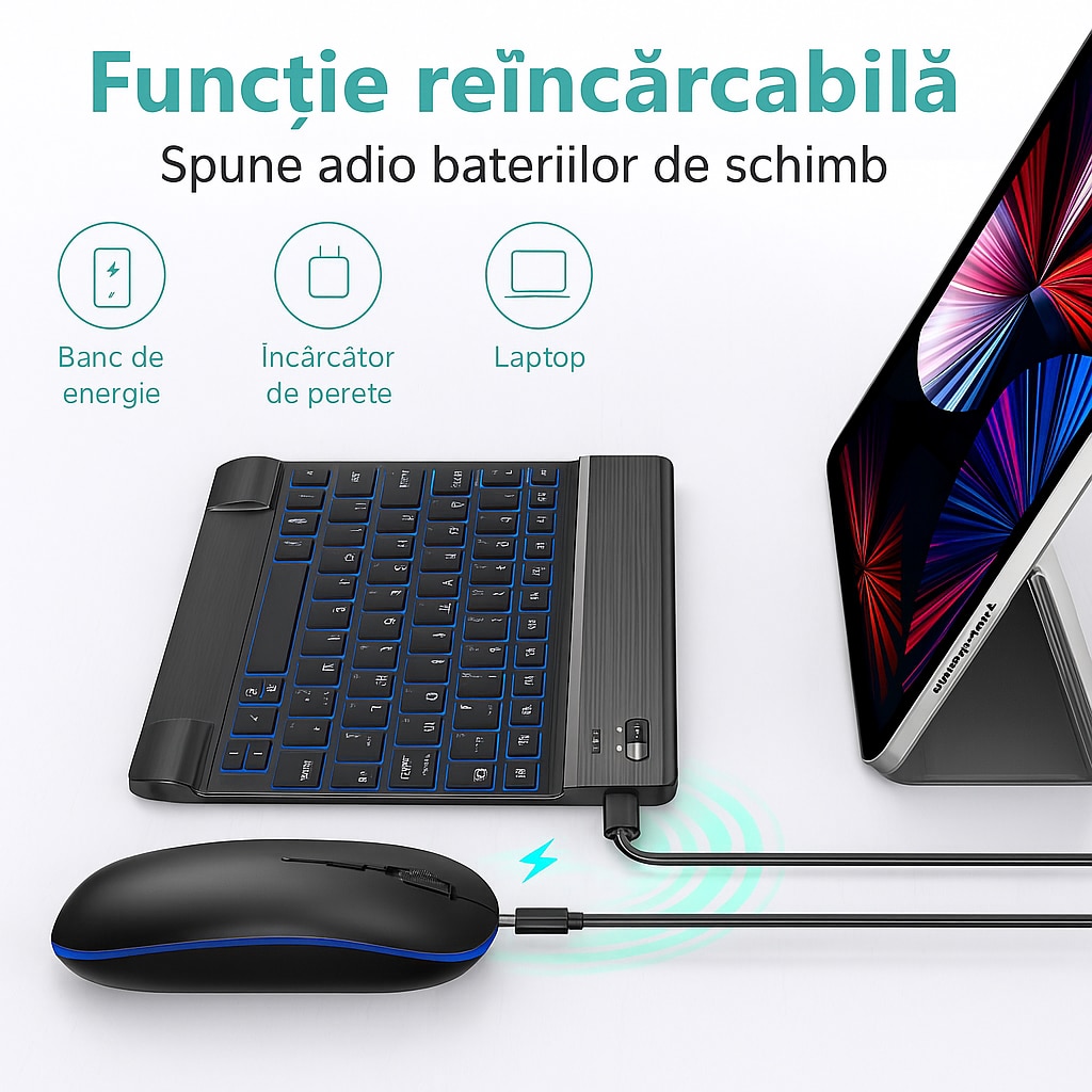 | Altele | Bluetooth Design ergonomic Design Slim Raza de operare de pana la 10 m Taste silentioase Layout US Butoane multimedia pentru acces rapid auto sleep si auto modul de trezire Cablu USB Type-C detasabil |