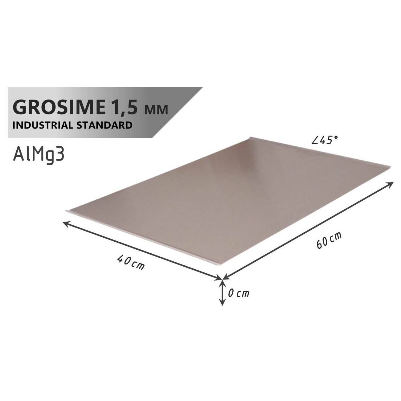 Tava Patiserie Soing, Dreptunghiulara, Aluminiu 1,5 mm, 60 x 40 cm, 2 laturi 45°