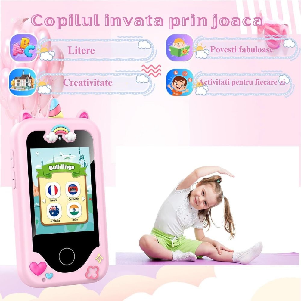 In concluzie, acest smartphone multifunctional pentru copii este o combinatie fantastica de divertisment si educatie, incurajand creativitatea si obiceiurile bune, oferind, in acelasi timp, ore nenumarate de distractie!