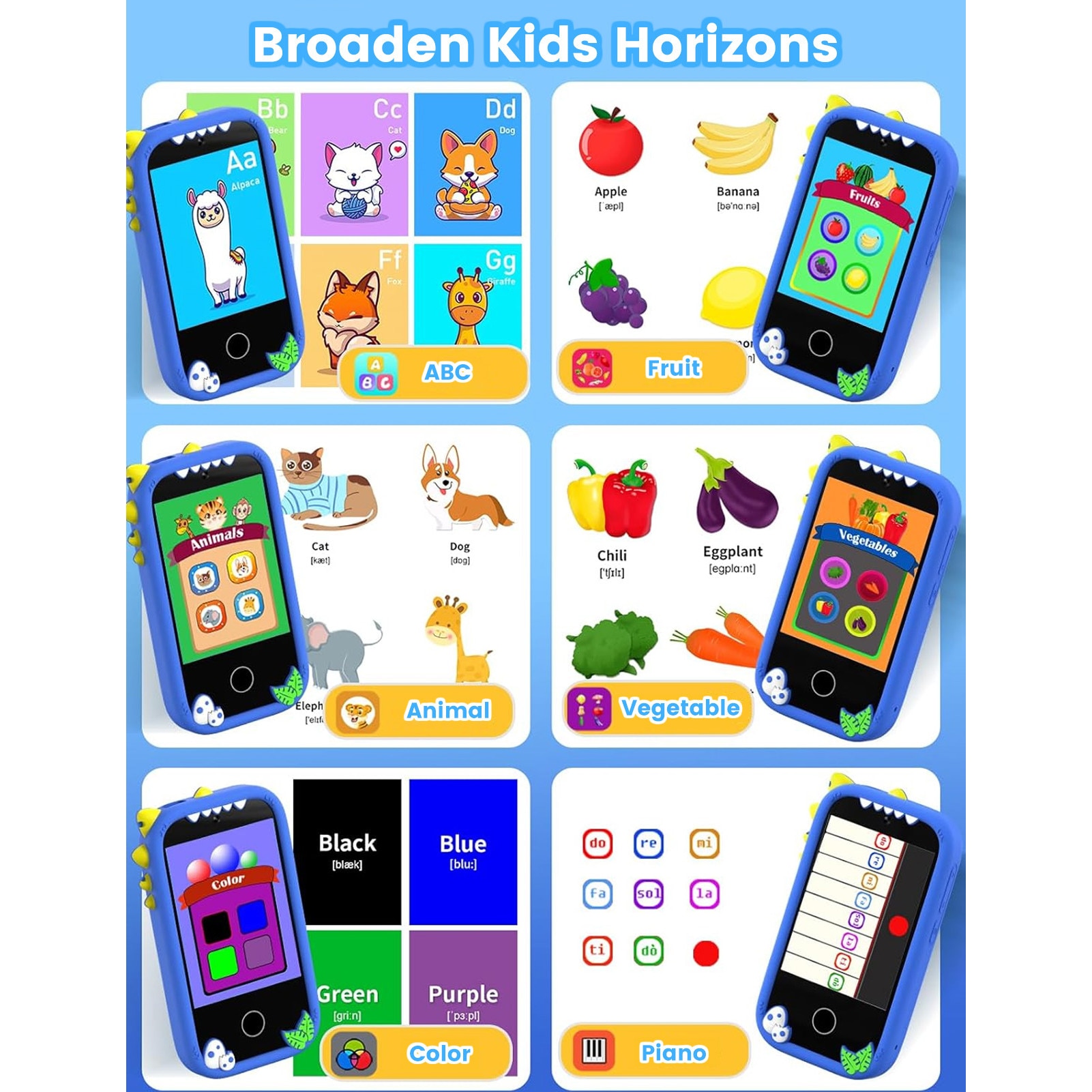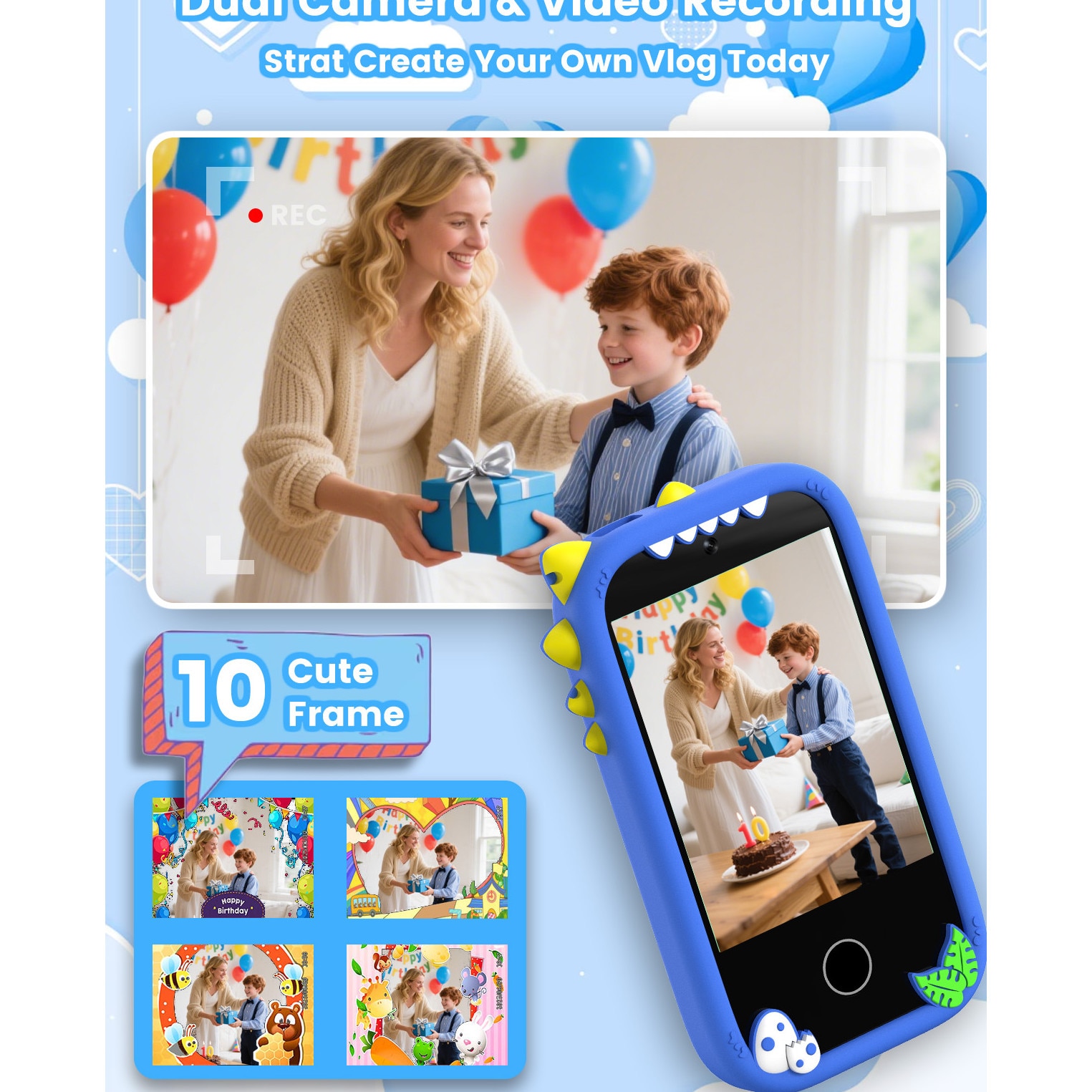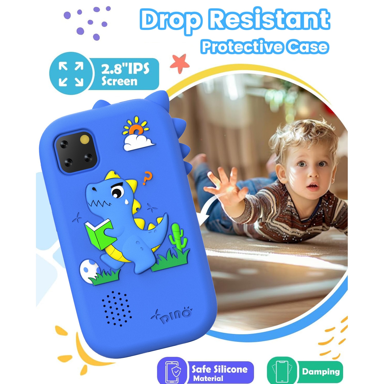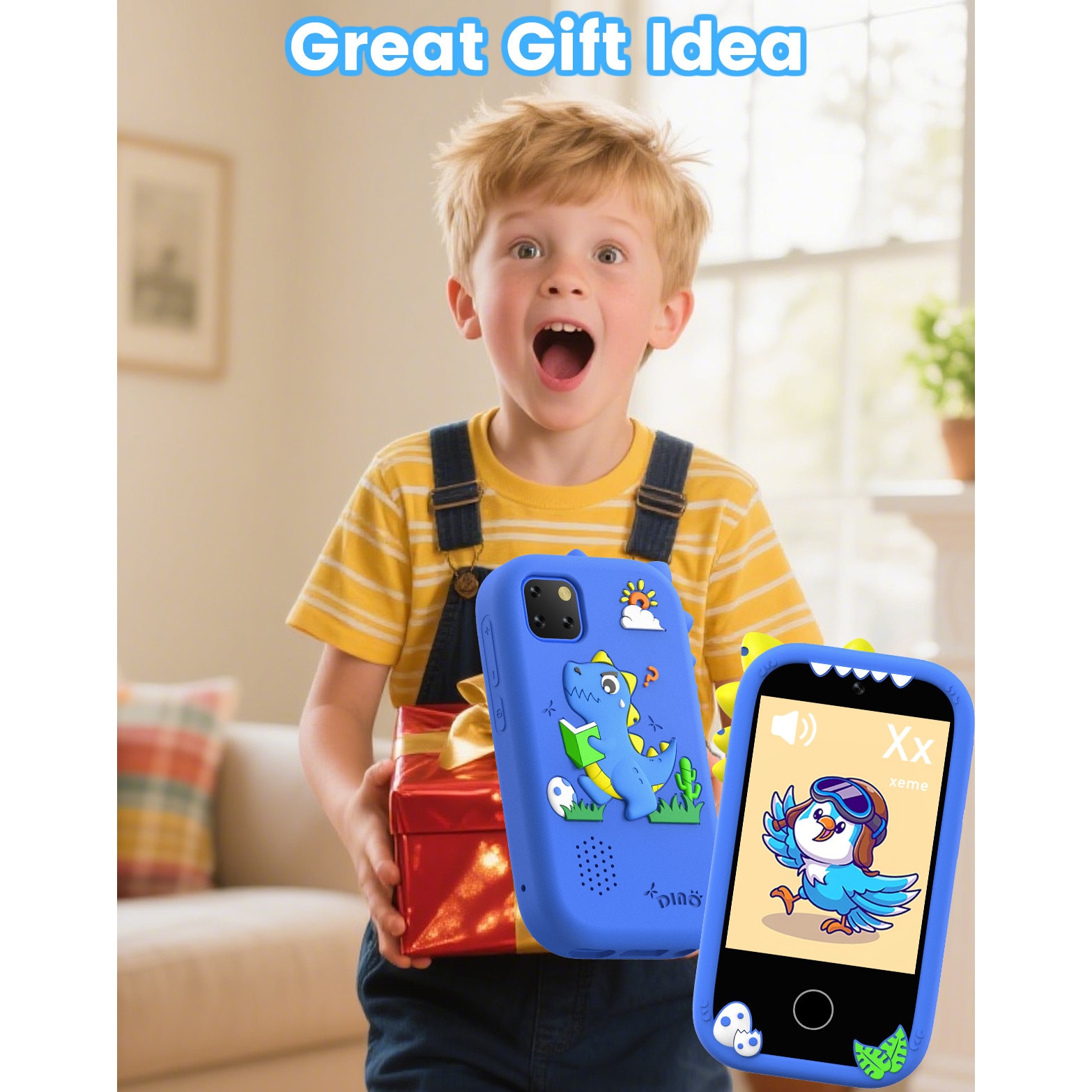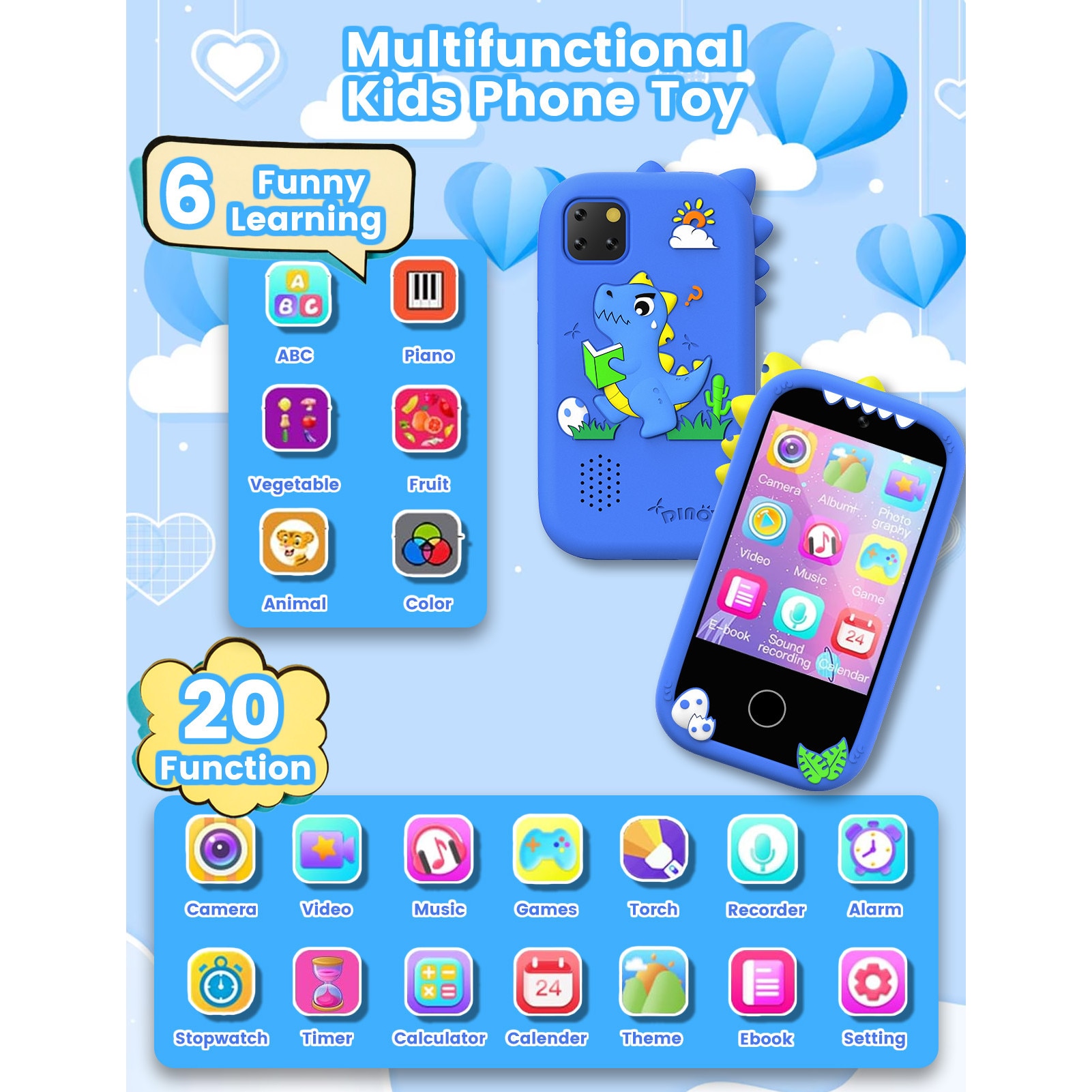 Telefon inteligent pentru copii ZONEY, Telefon Mobil si Jucarie Educativa 2in1 Multifunctional, Jucarie cadou de Craciun cu 18 Jocuri, 2.8" touchscreen, camera duala, 32G, Player MP3, 50+ Imagini de Fundal, Control Parental, Lanterna, Albastru