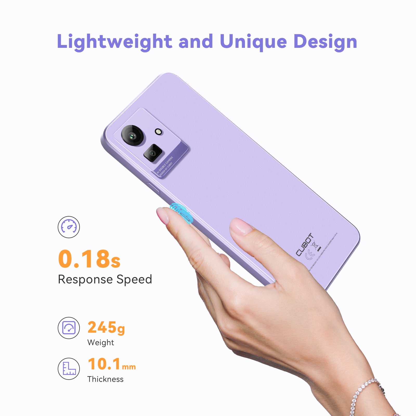 Telefon mobil CUBOT Note 50, Dual SIM, 16GB RAM, 256GB/1TB ROM, 4G, 50MP camera, Octa Cores, 5200mAh, NFC, GPS, Fingerprint, Violet
