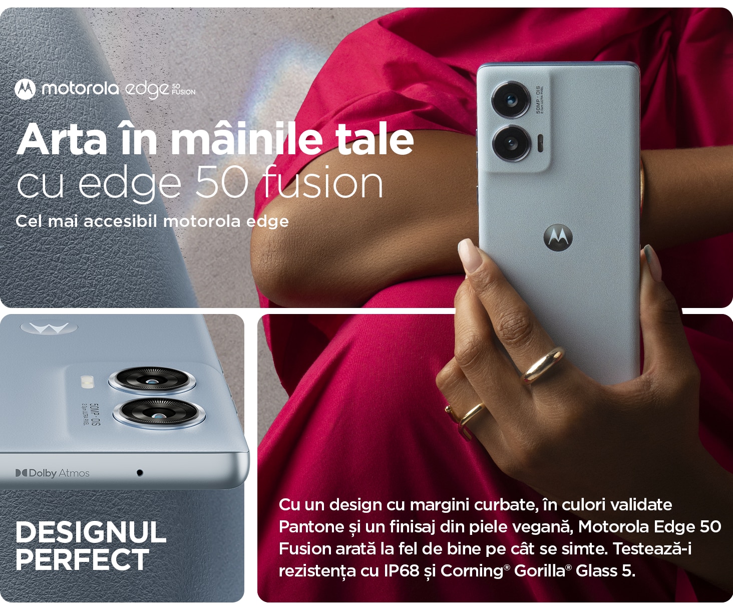 Telefon mobil Motorola Edge 50 Fusion, Dual Sim, 256GB, 8GB RAM, 5G, Hot Pink