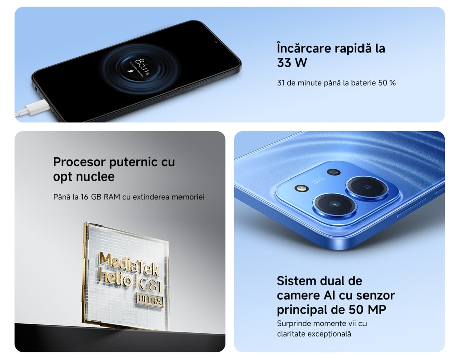 Telefon mobil Xiaomi Redmi 15C, 4GB RAM, 128GB ROM, Blue + Woven Strap Ring Stand