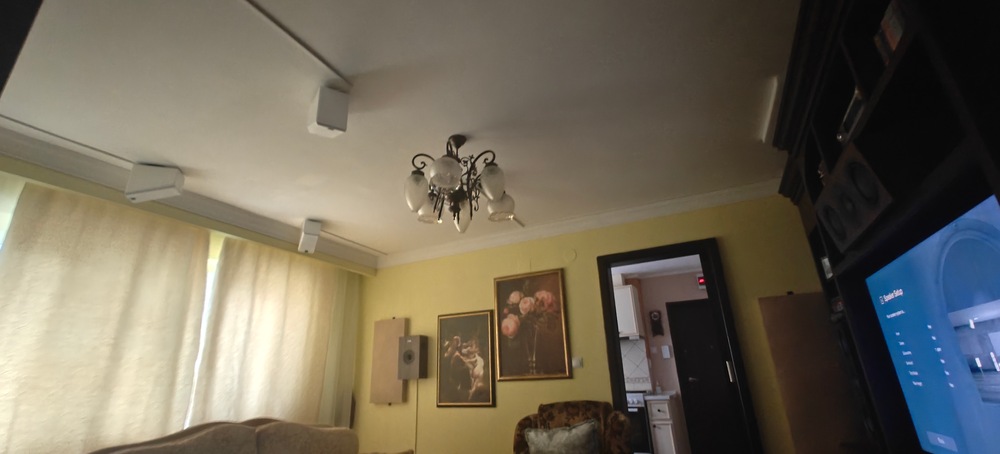 Sincer am avut emotii daca are sa il tina sus suportul. Totul e ok pana acum. Din pacate a trebui sa renunt la boxa din centru deoarece nu mai incape sub televizor. Ca si idee peretele are 2,5 M latime