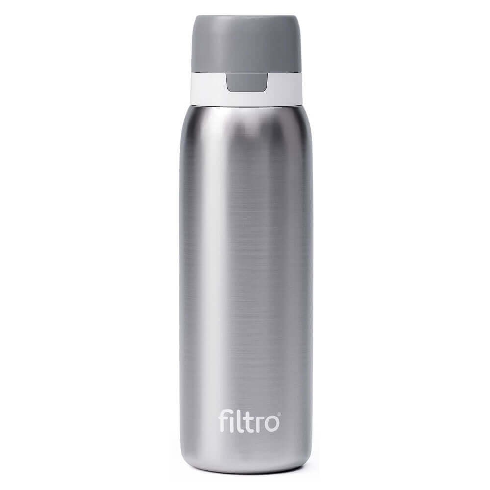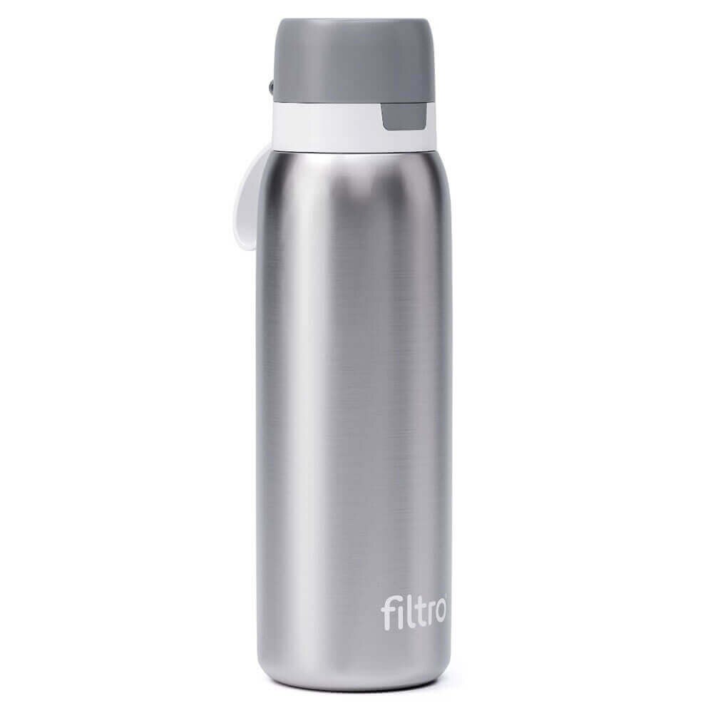THERMO PURE de la FILTRO este o sticla de apa cu un filtru incorporat, conceputa in principal pentru a elimina impuritatile, clorurile si de a imbunatati gustul si mirosul apei. Termosul filtrant FILTRO THERMO PURE contine un cartus din carbube activat bloc. Insa exista disponibile si alte modele de cartuse pentru a se adapta diferitelor scenarii de utilizare: Ahlstrom / Fibre de carbune activat / Carbune activat bloc. Este potrivita atat pentru filtrarea apei de la robinet acasa, cat si pentru filtrarea apei in aer liber.