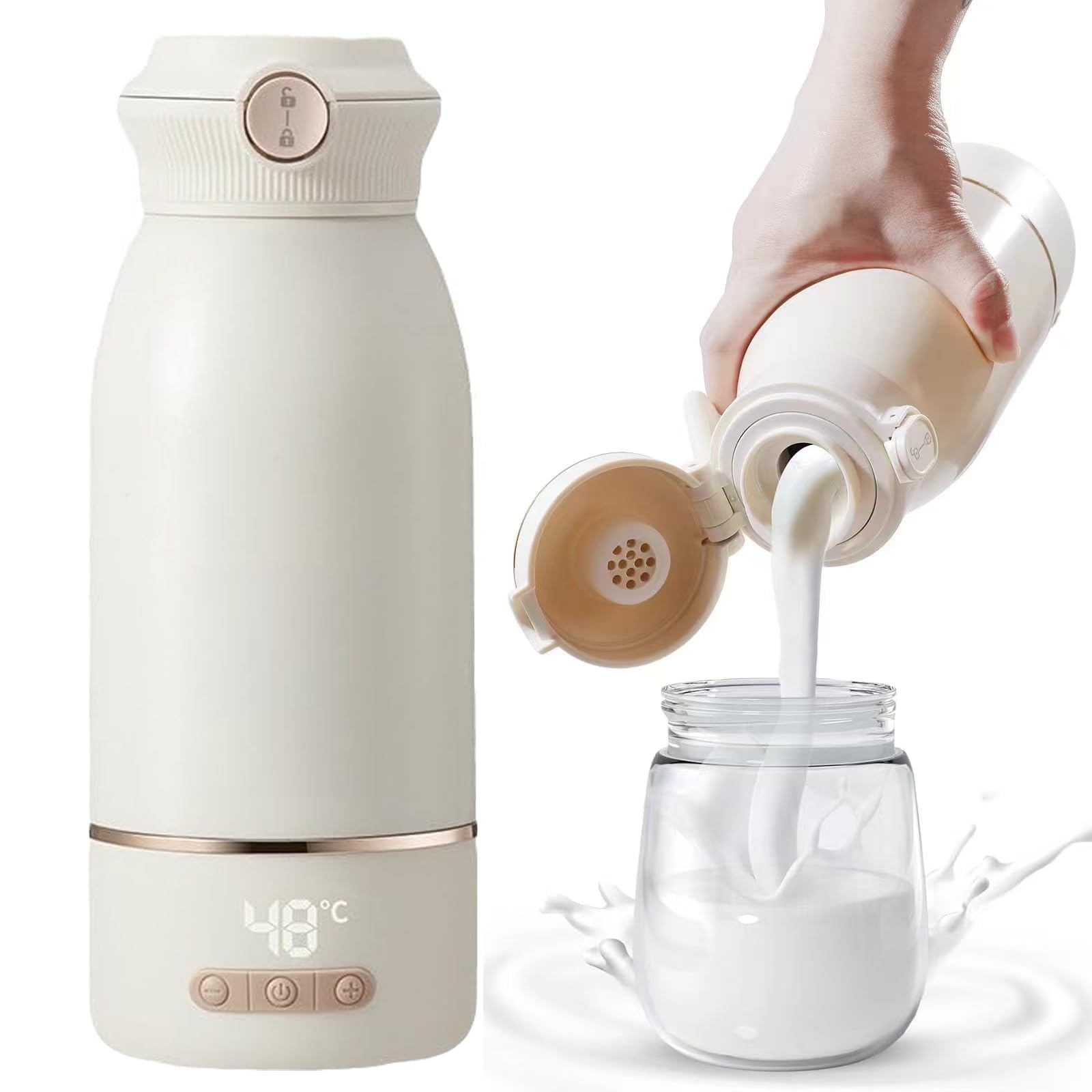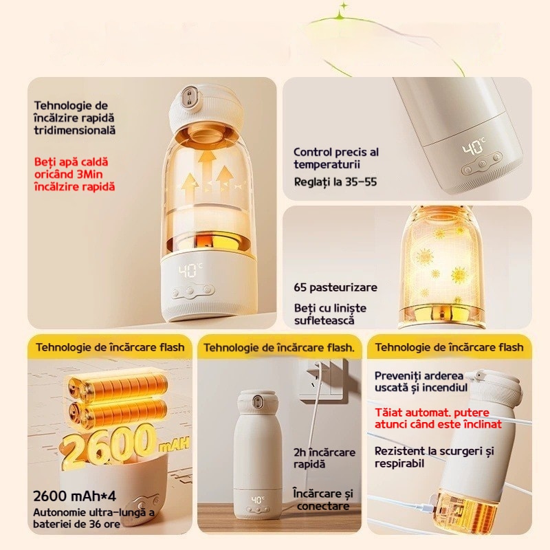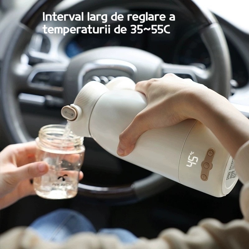Termos Electric Lapte Bebelusi Cu Afisaj Digital, Izolare Termica 500Ml, IPX4 Waterproof, Incarcare Rapida 2 Ore, Control Termic 37°C Precise, Design Antiscurgere Cu Ecran Ecran Mare, Capacitatea 40.7Wh, XICENRM®, Culoare Alb