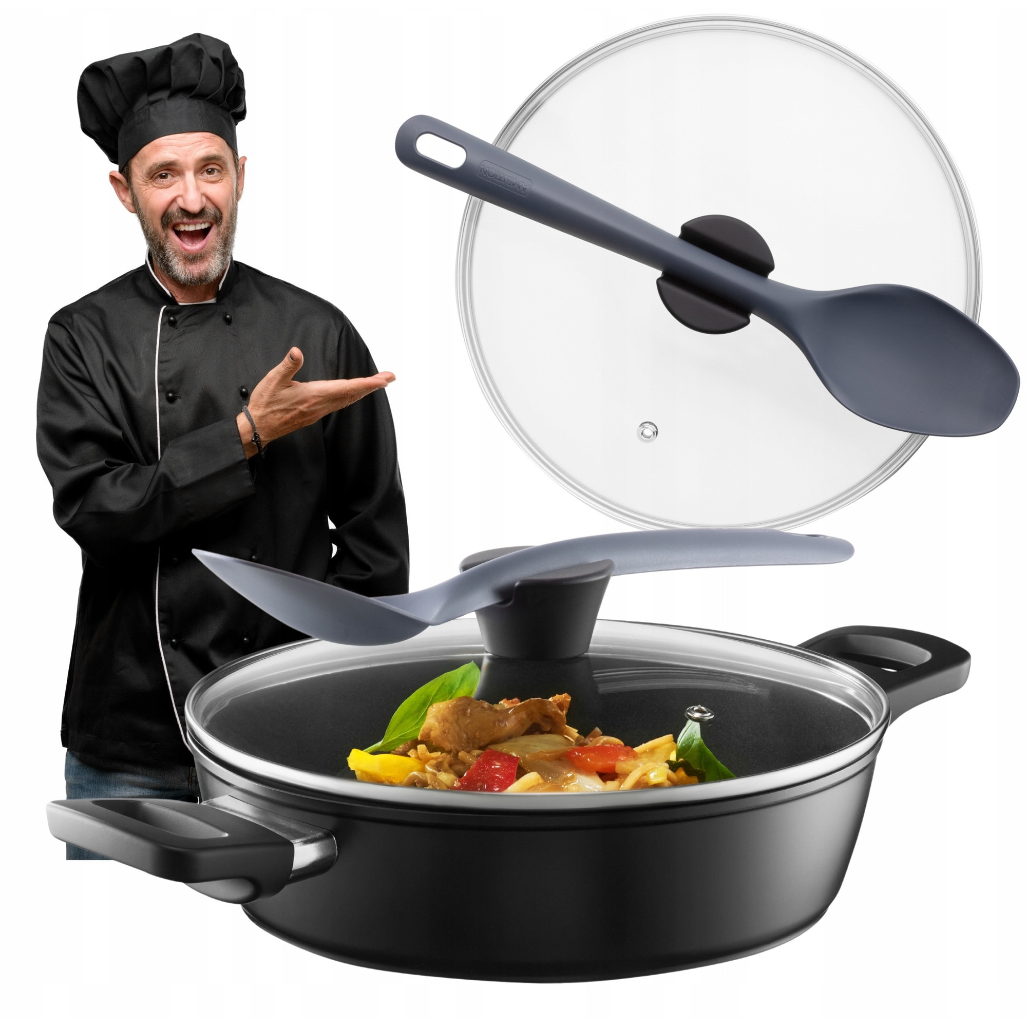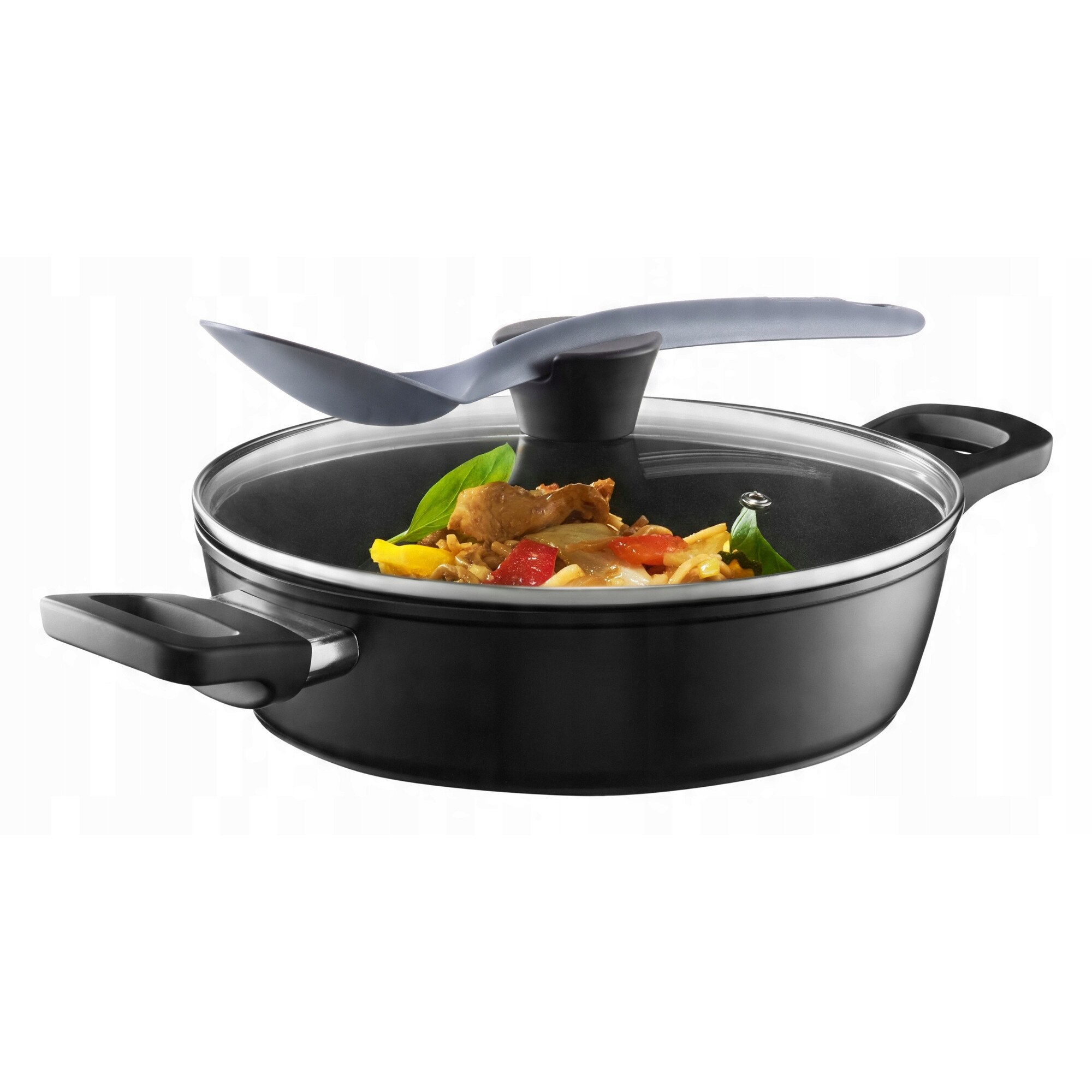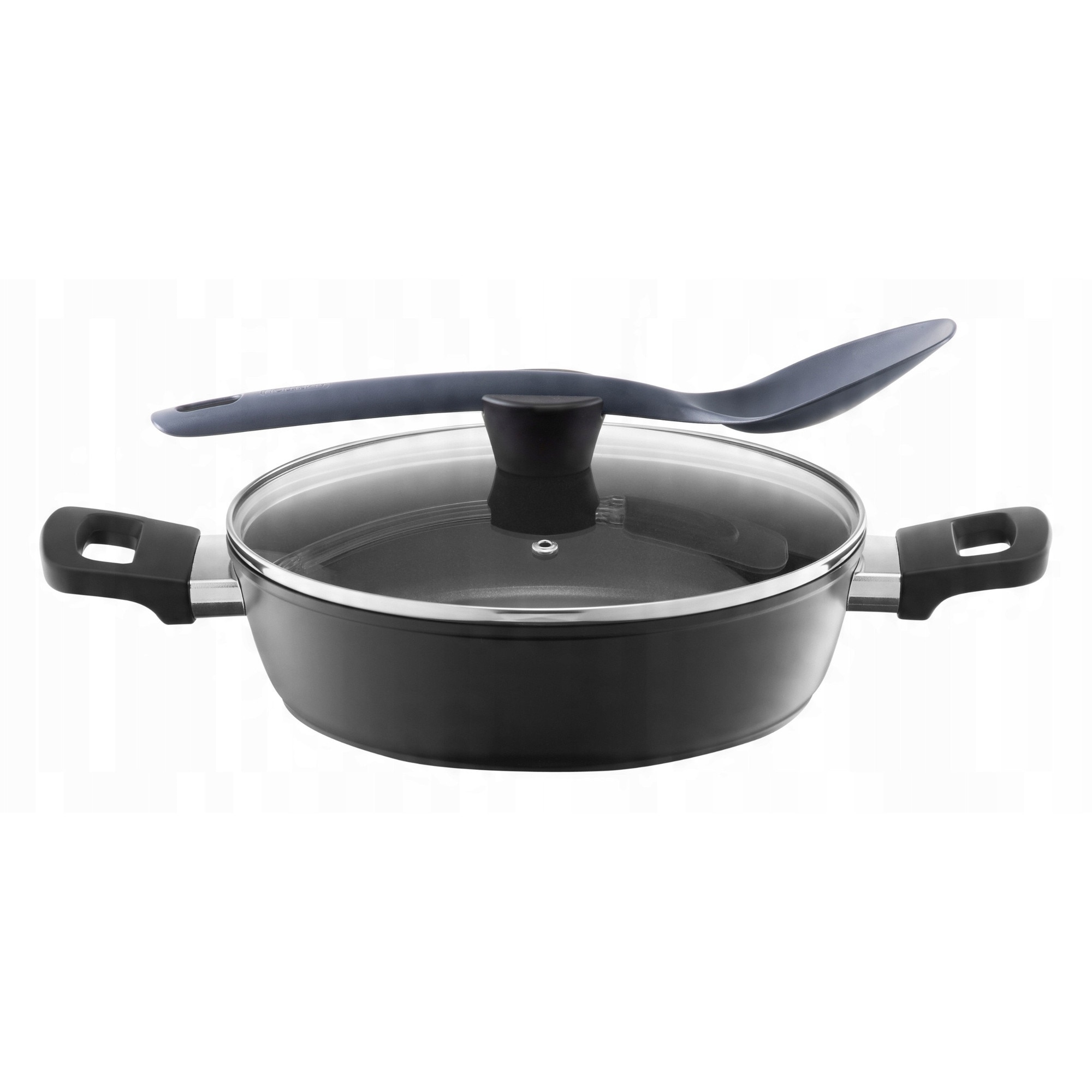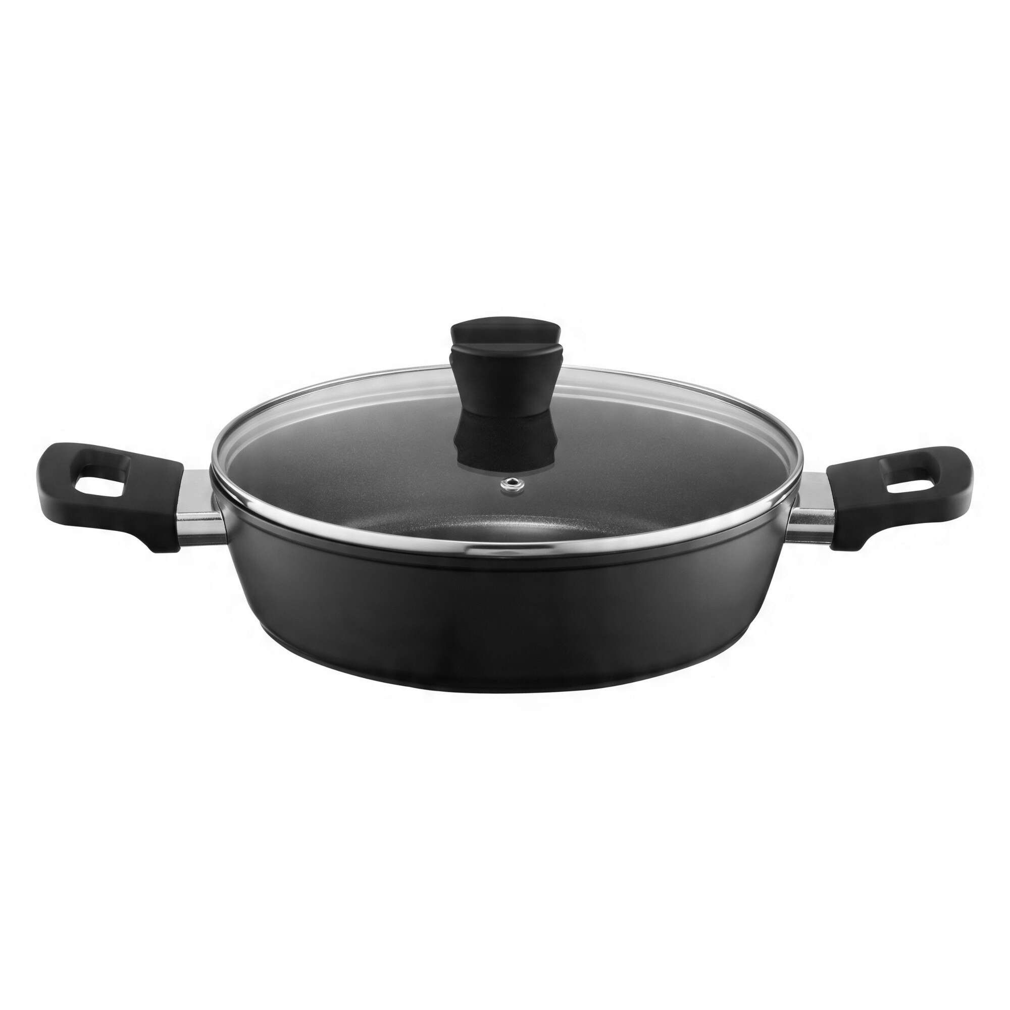 Tigaie adâncă Ambition 32cm, antiaderentă, aluminiu forjat, cu capac, negru-gri