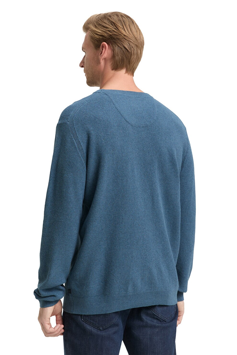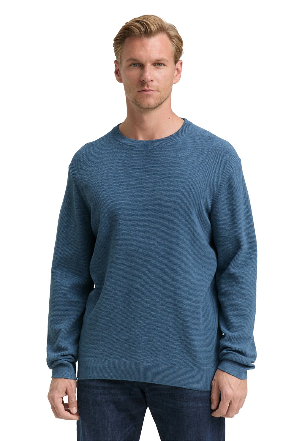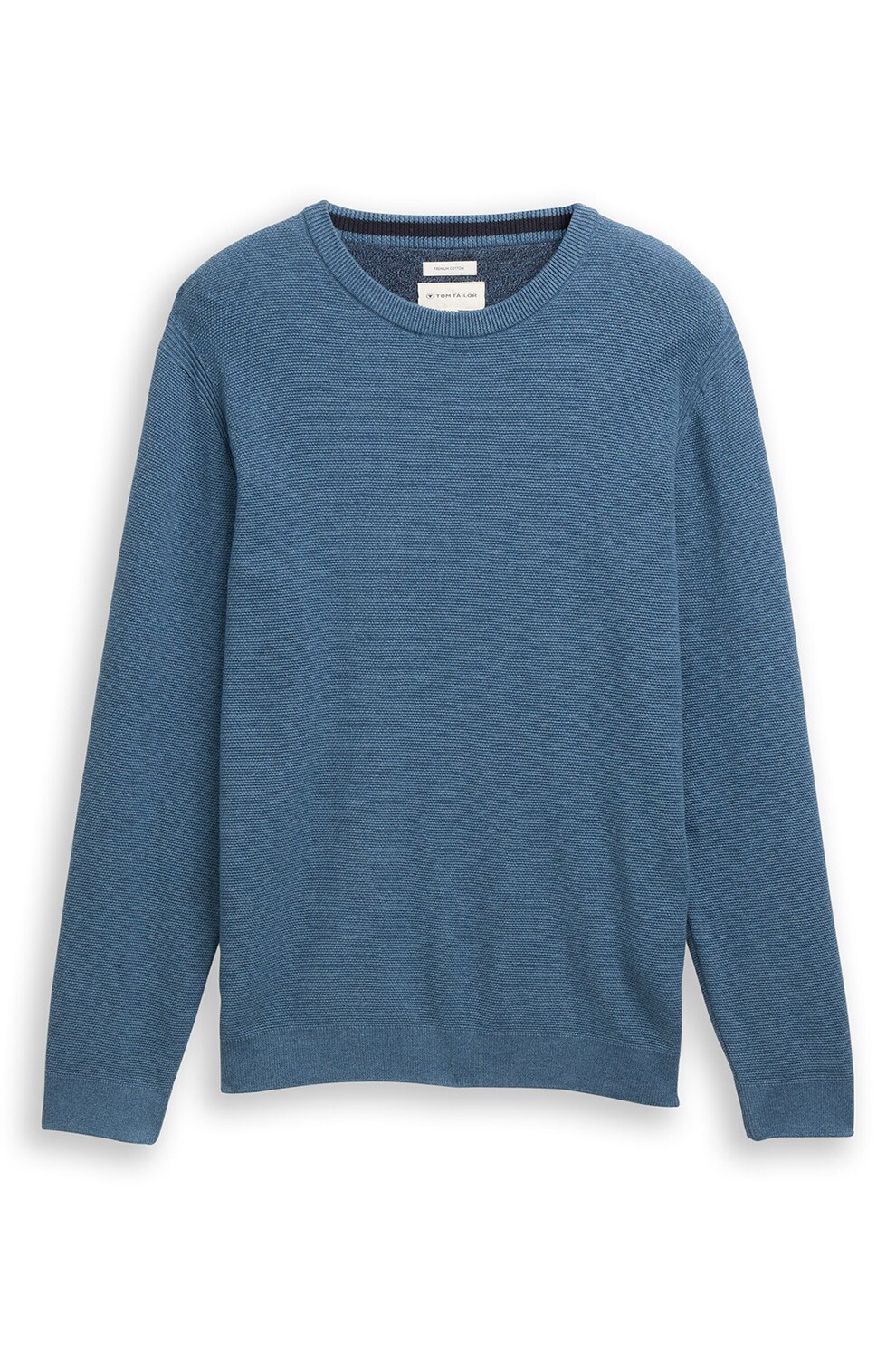 Tom Tailor - Pulover slim-fit din amestec de bumbac organic, Albastru inchis melange, 2XL