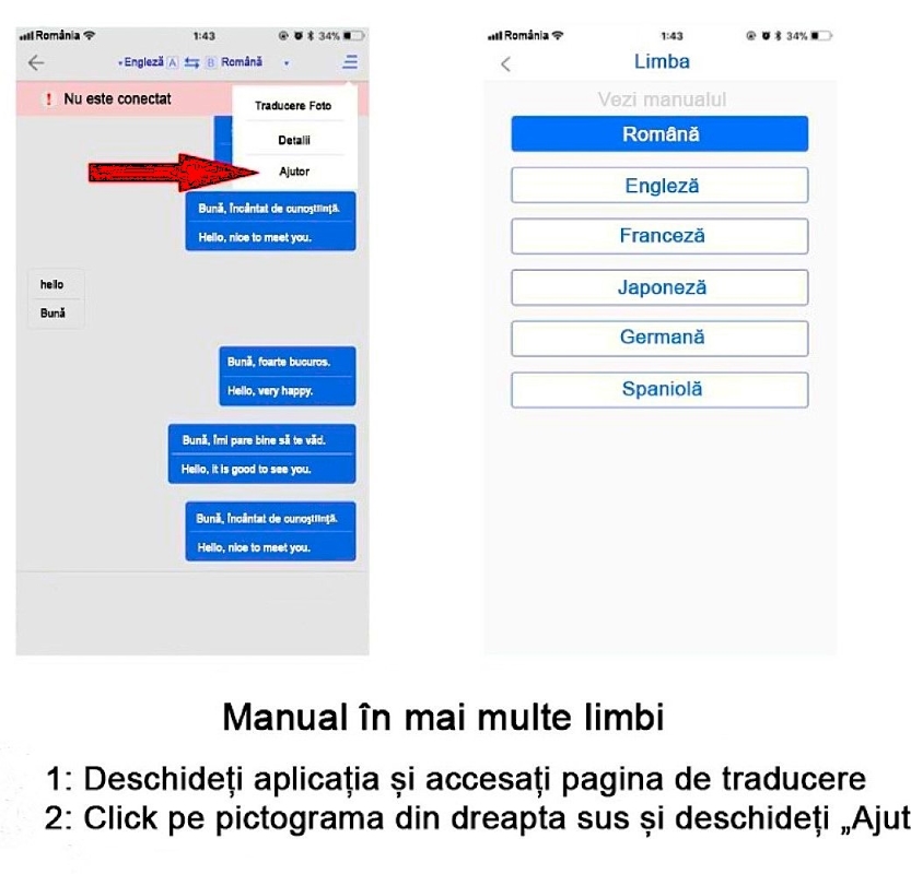 | Continut pachet | 1 x Manual de utilizare 1 x Incarcator 1 Cablu USB Type-C 1 x Traducator |