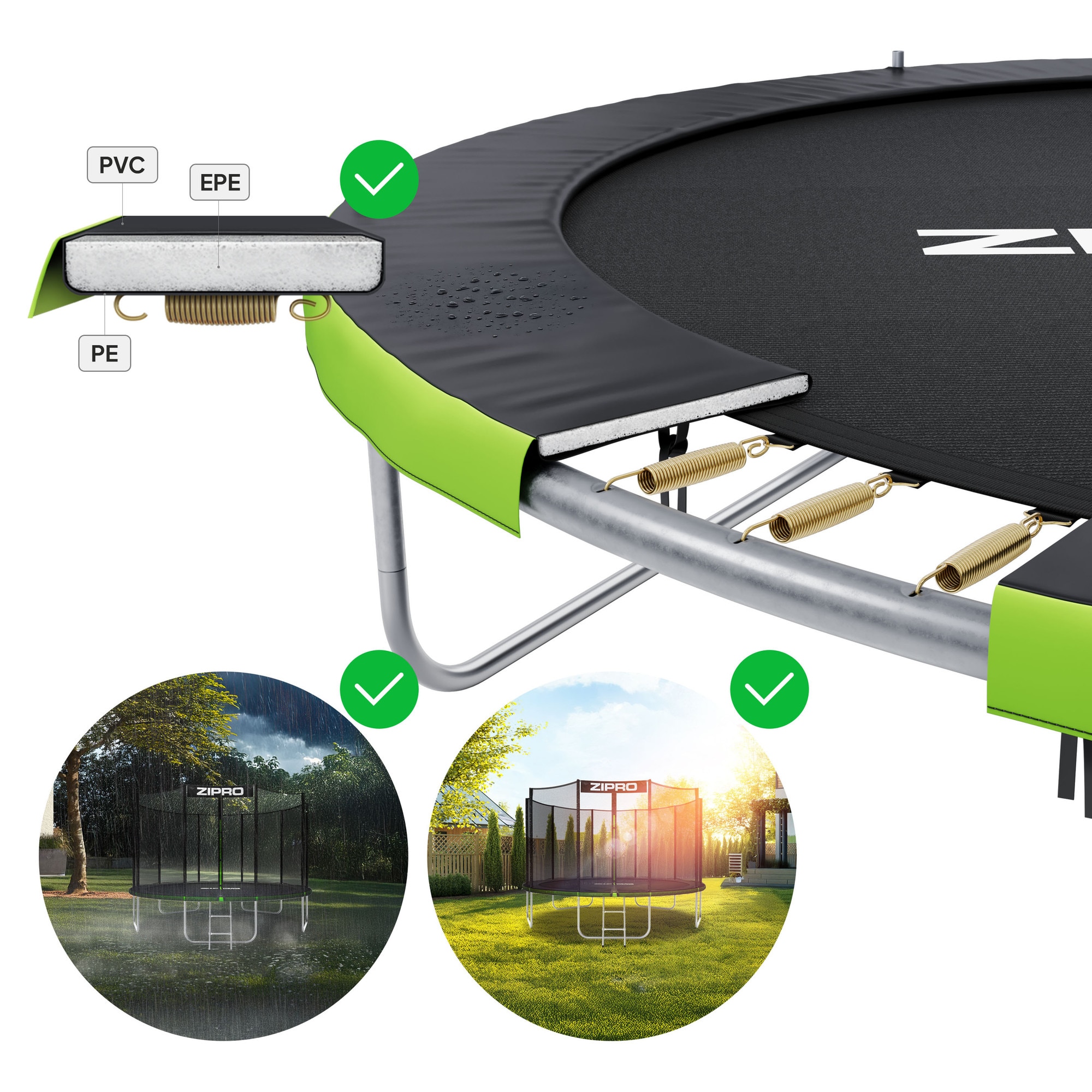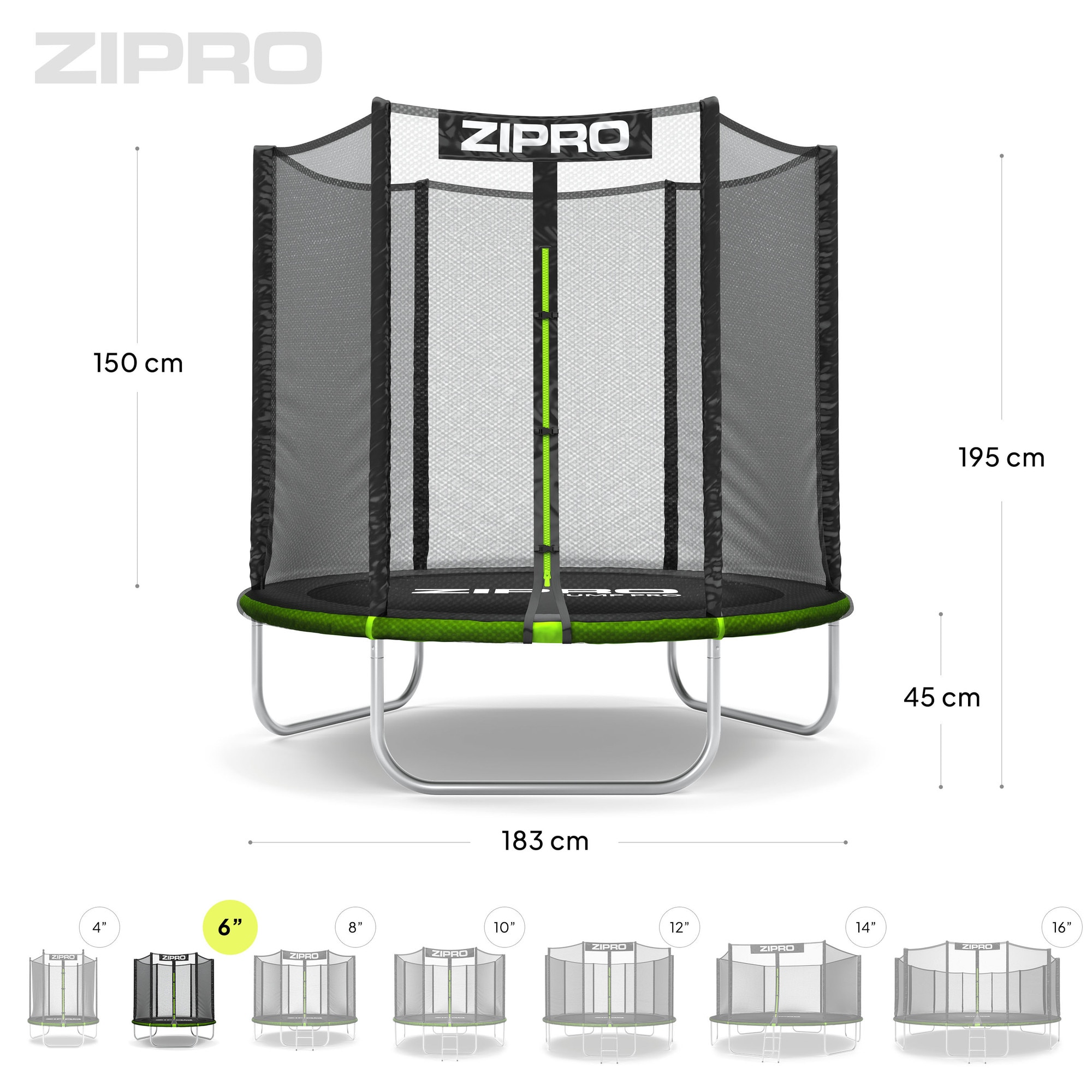 Trambulina ZIPRO JumpPro OUT 183 cm(6 FT), Plasa Protectie Exterioara, Scara Inclusa, 36 Arcuri, Greutate maxima utilizator 100 kg, Diametru Total 183 cm, Instalare Usoara