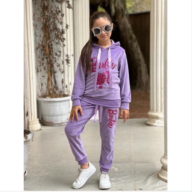 Trening Barbie, din Catifea, cu Gluga, Pentru Fete, Mov, 152 (11-12 ani)