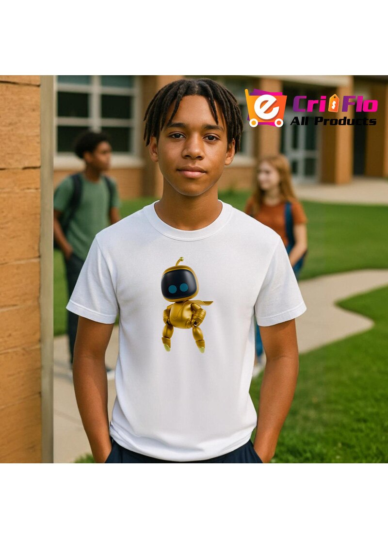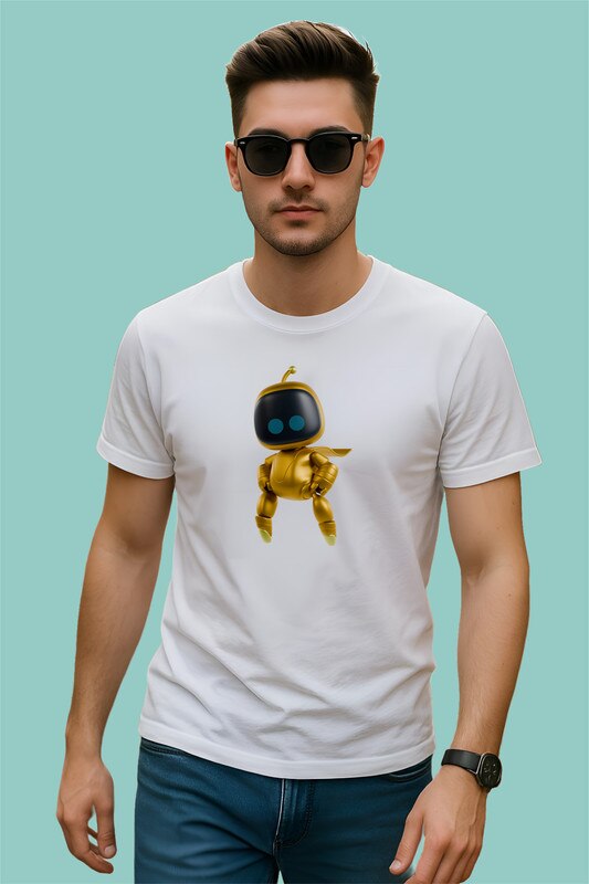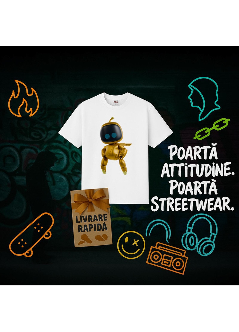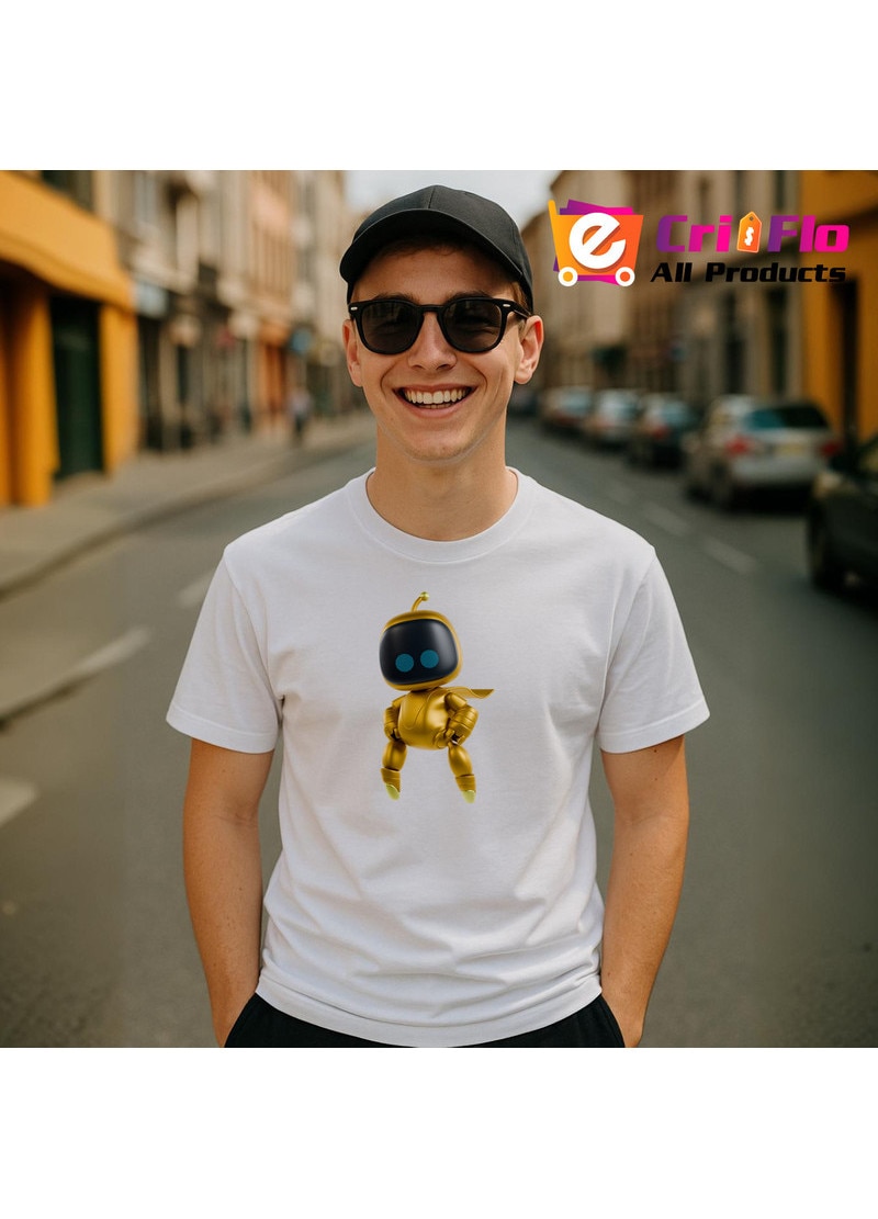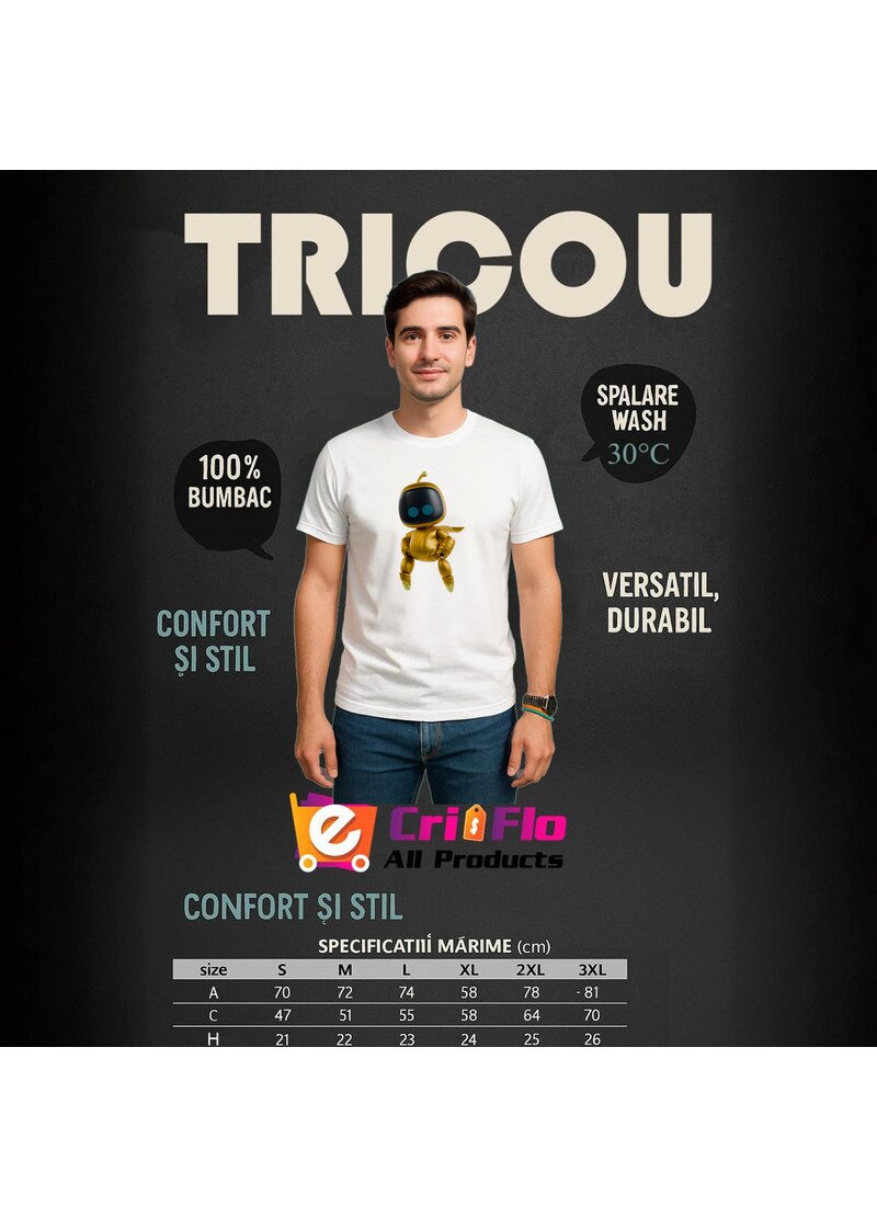Tricou Astro Bot personaj robot auriu, Barbat, 100% Bumbac, Cri-Flo, Culoare Alb, Marime S