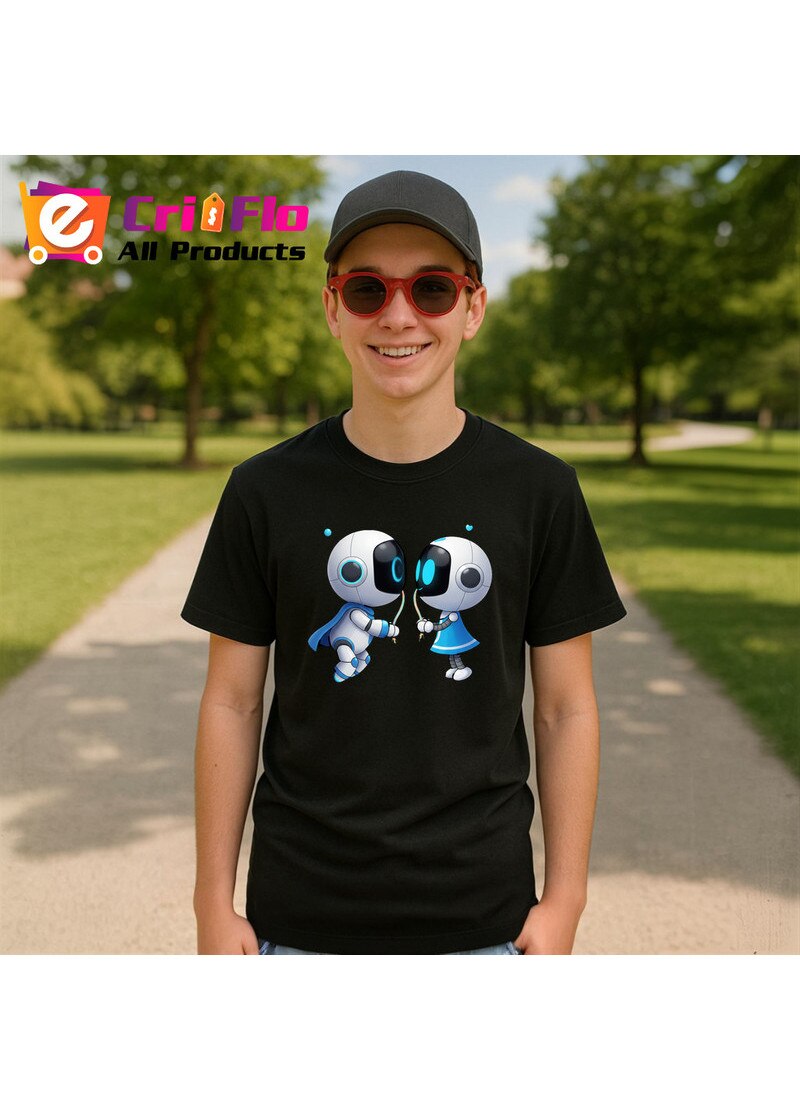 Tricou Astro Bot personaje interactiune prieteni, Barbat, 100% Bumbac, Cri-Flo, Culoare Negru, Marime 3XL