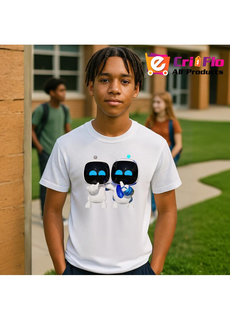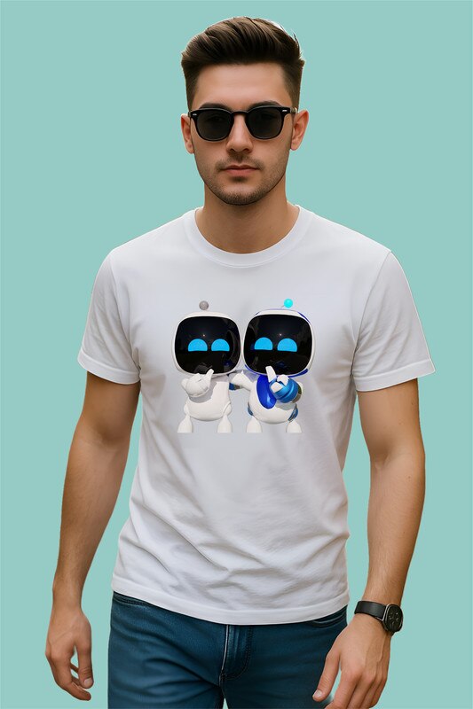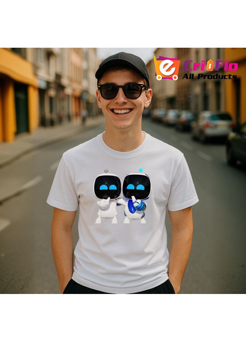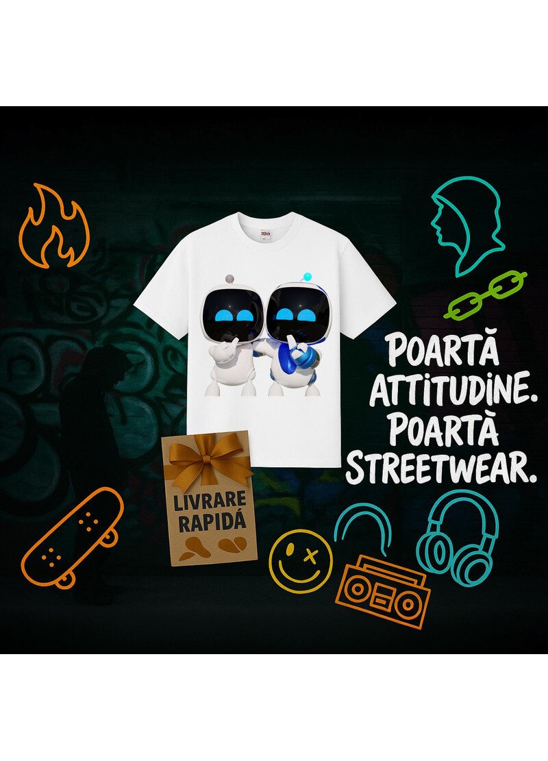 Tricou Barbat Astro Bot personaje apropiati stil prietenie, Alb