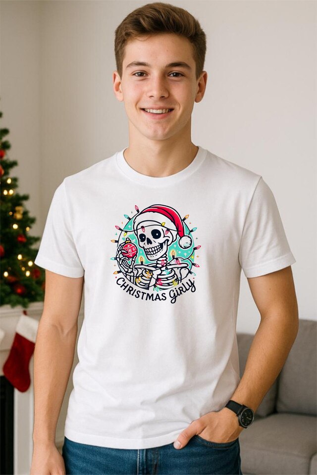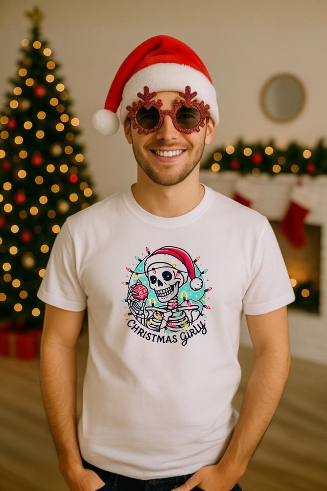Tricou Barbat Funny Christmas Skeleton 6, Alb