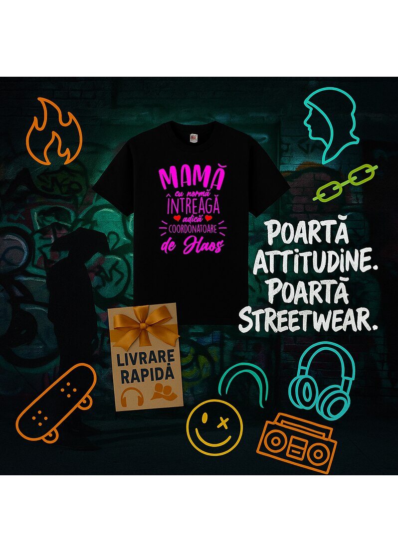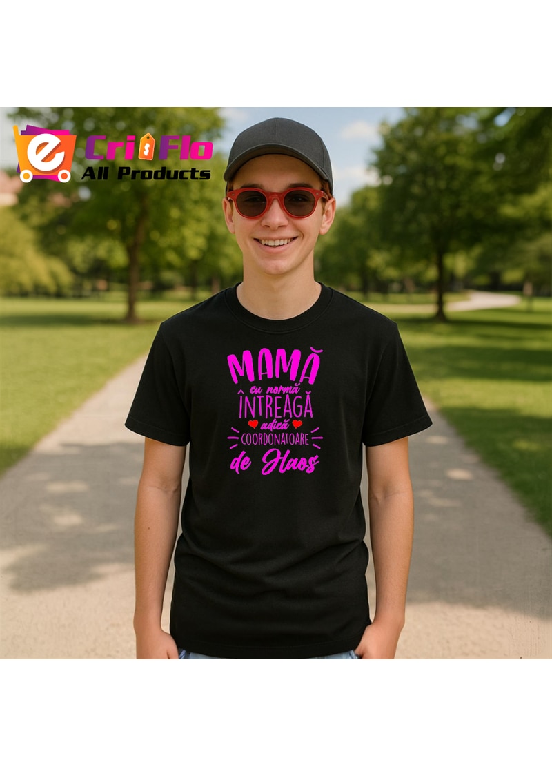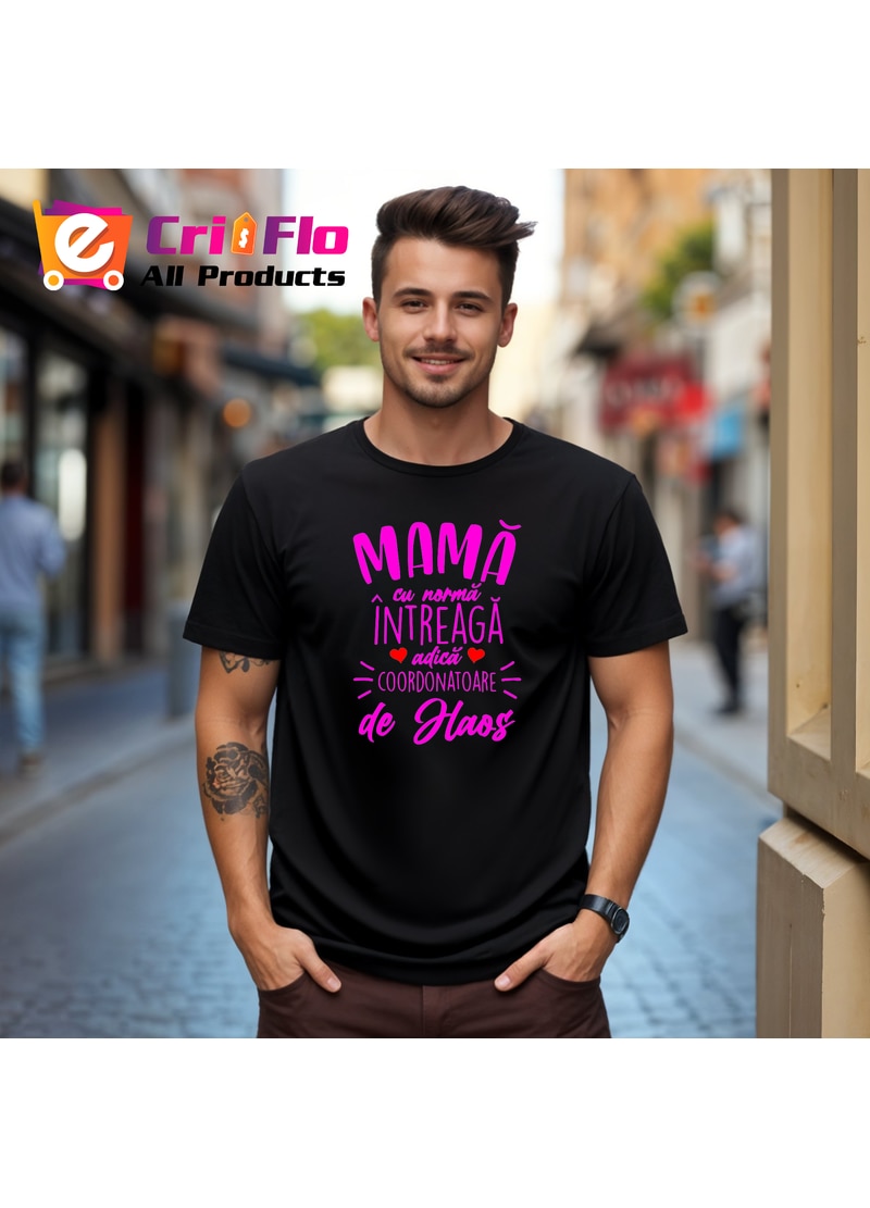 Tricou barbat mama cu norma intreaga adica coordonatoare de haos mesaj amuzant familie, Negru