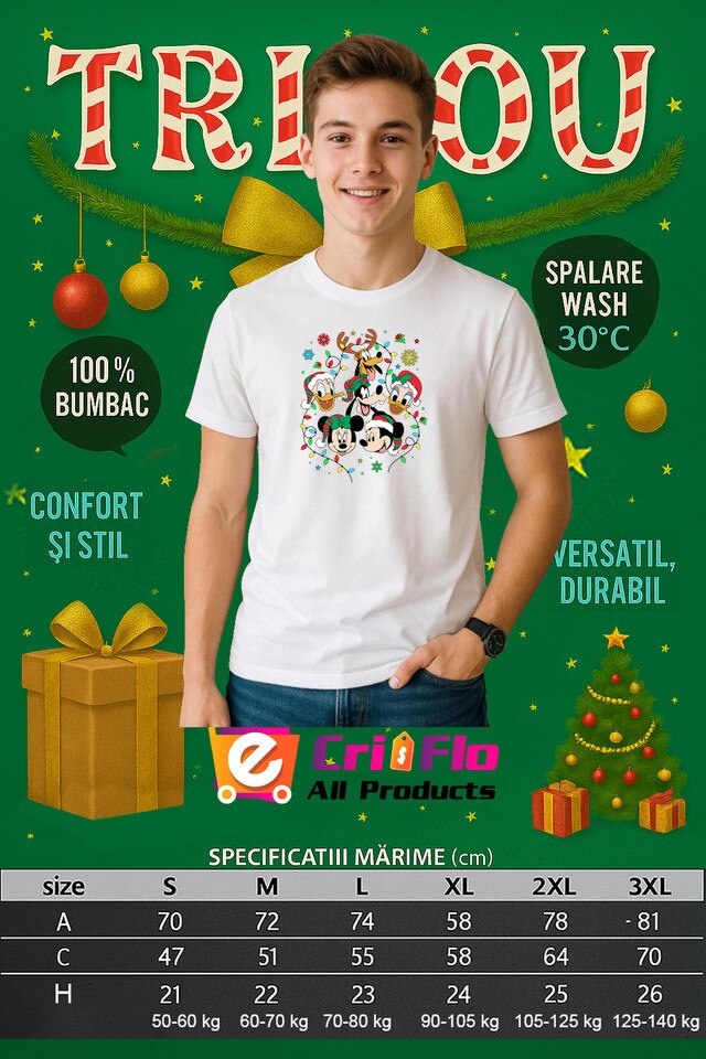 Tricou Barbat Mickey And Friends Christmas 6, Alb