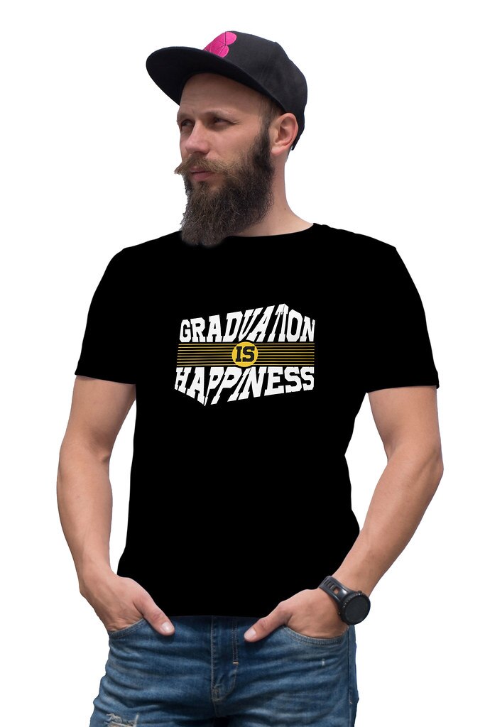 Tricou barbat personalizat Graduation is happiness Oktane, Negru