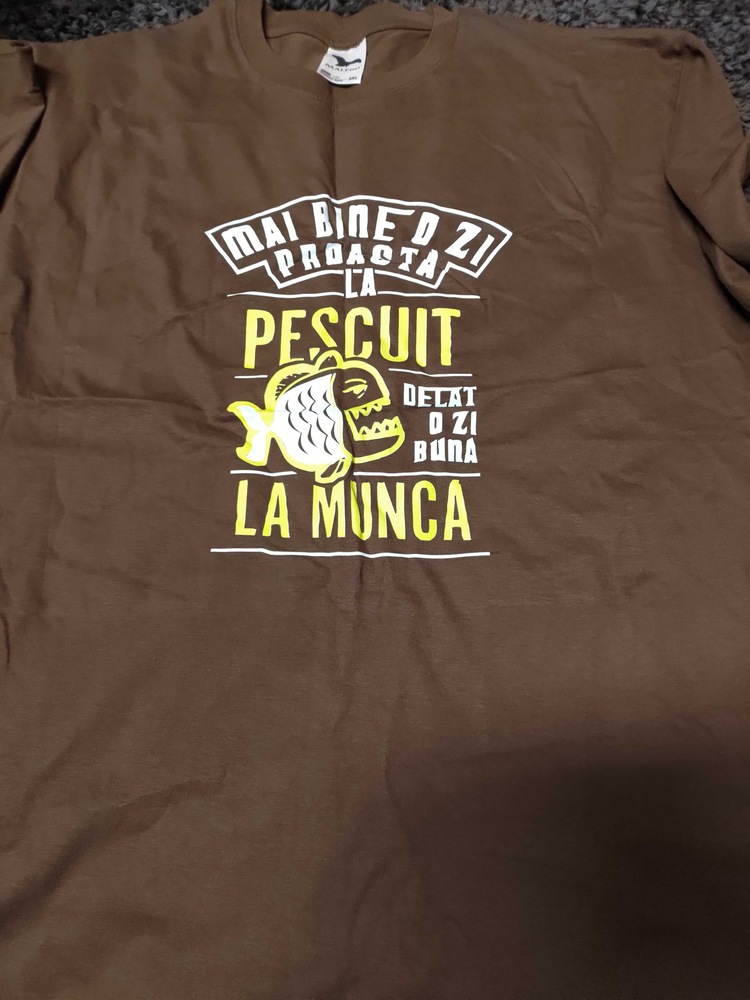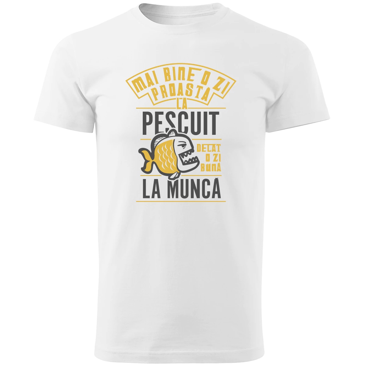 Tricou Barbat , Personalizat "Mai bine o zi proasta la pescuit decat o zi buna la munca", Alb, Marime M