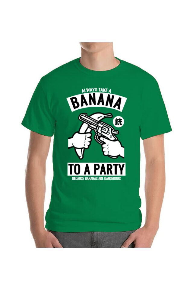 Tricou barbat, Printado, banana party, Bumbac, Regular fit, Verde mediu, XL INTL