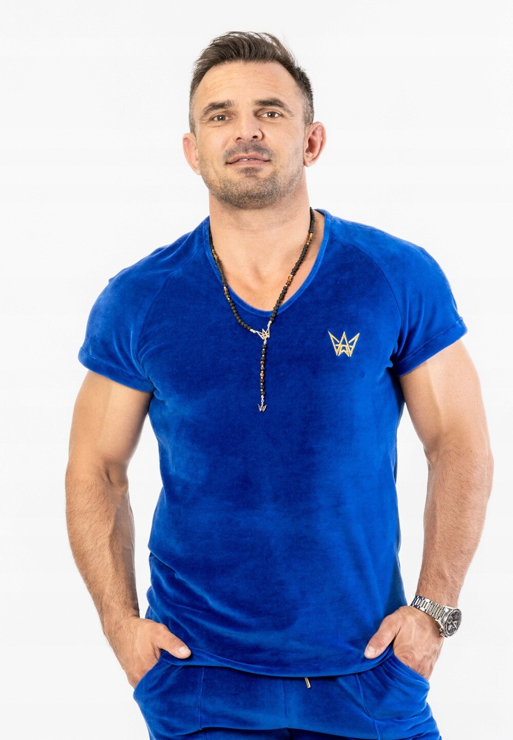 Tricou Barbatesc Din Catifea Albastru Cu Broderie Aurie Marimea S Tres Amigos