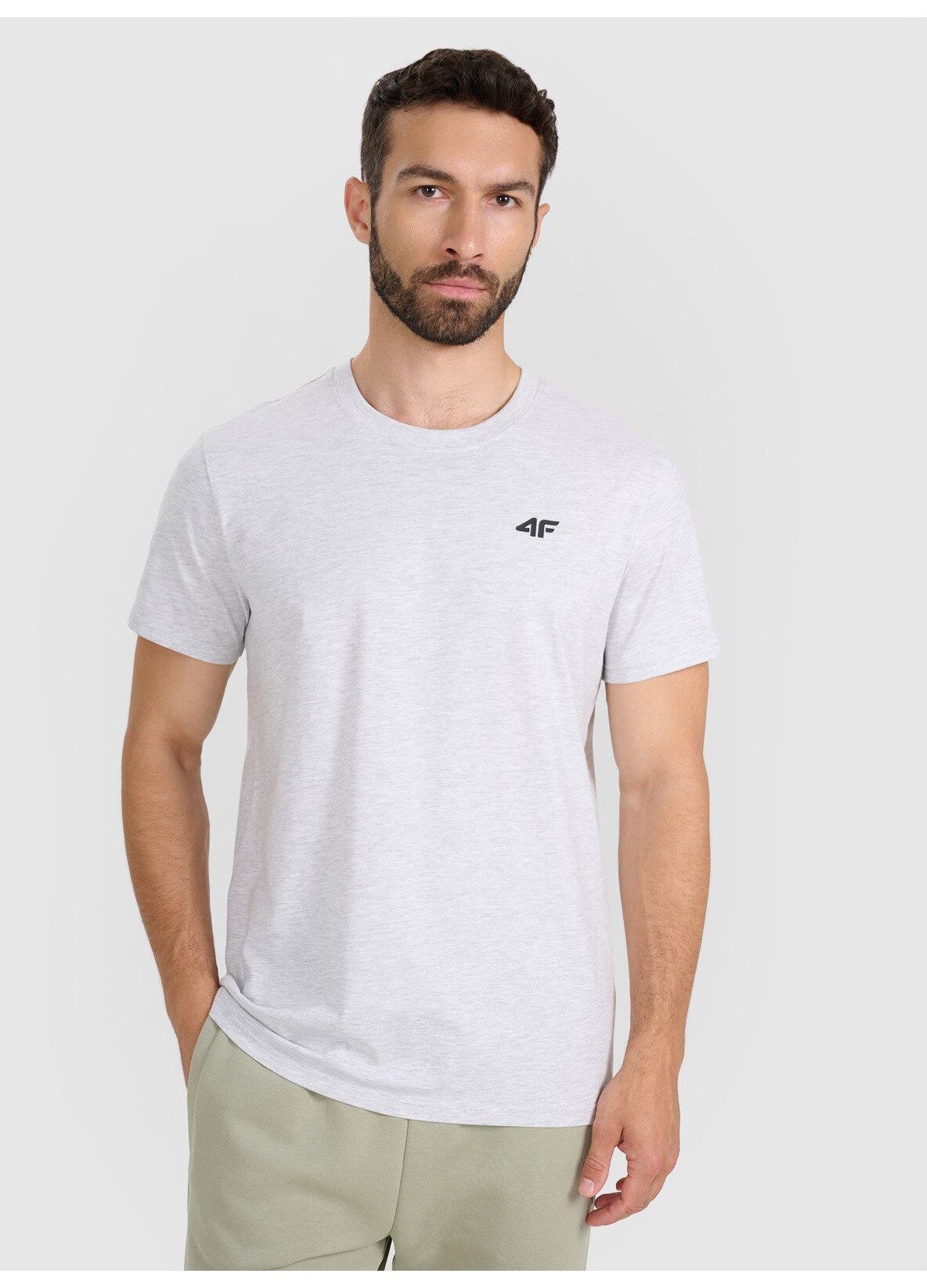 4F - Tricou Barbati Gri Deschis Sportstyle, Bumbac 98%, Regular Fit, Marimi S-XXL, Decolteu Rotund