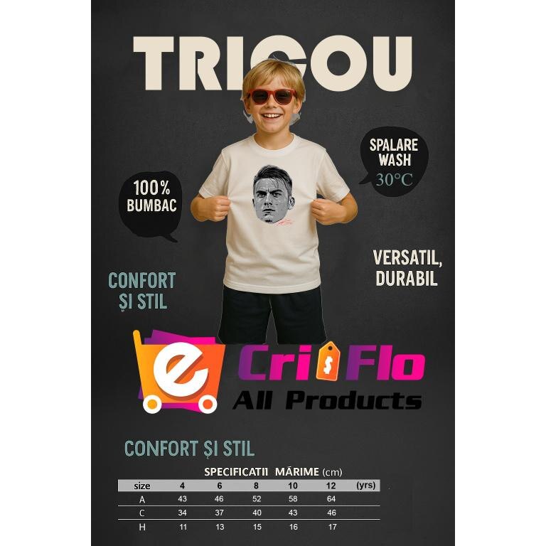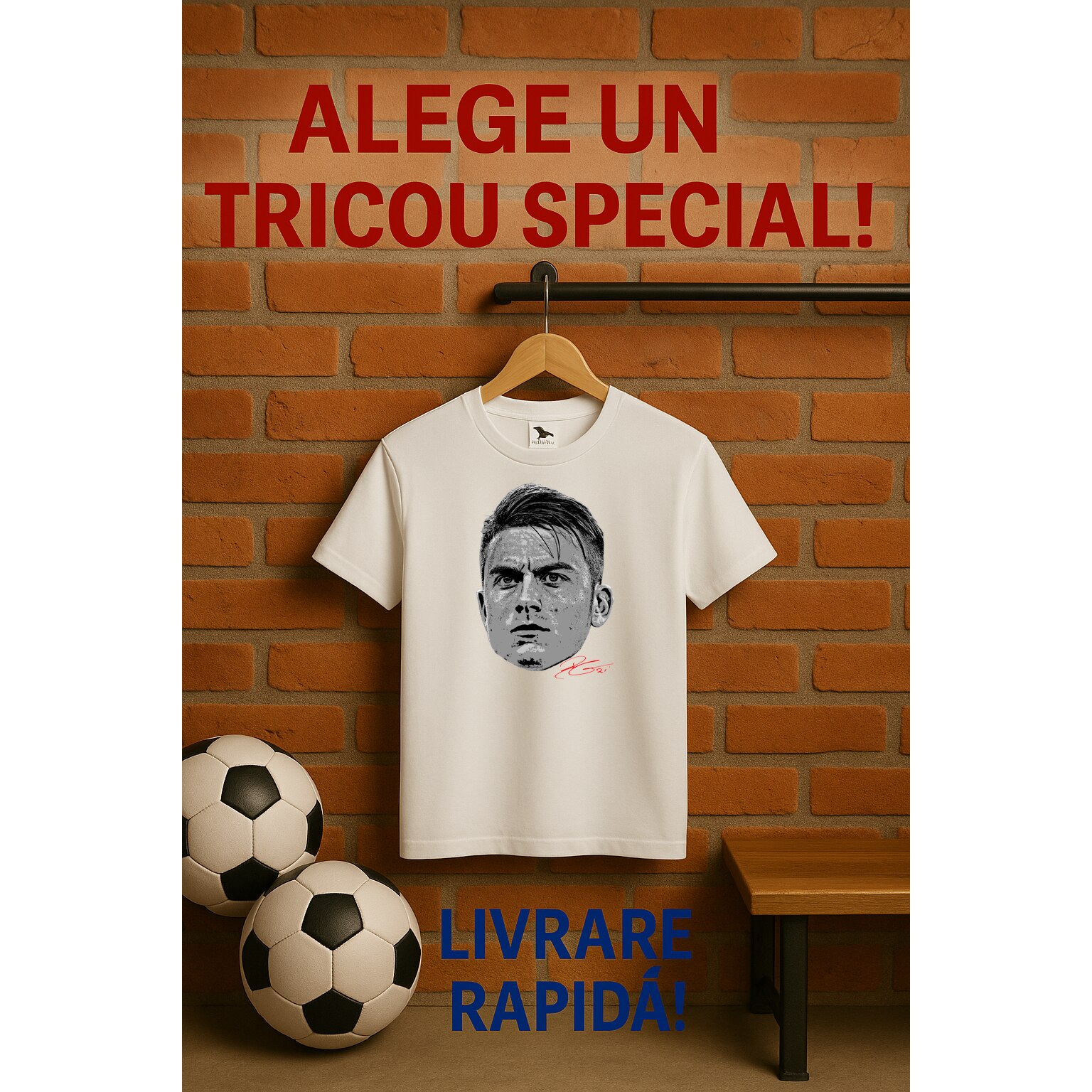 tricou copii fotbalist Paulo Dybala-AS Roma, Alb