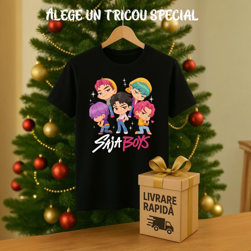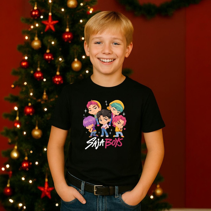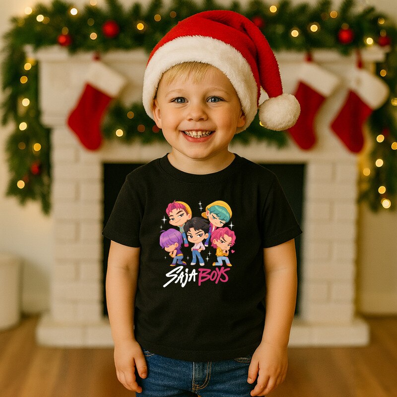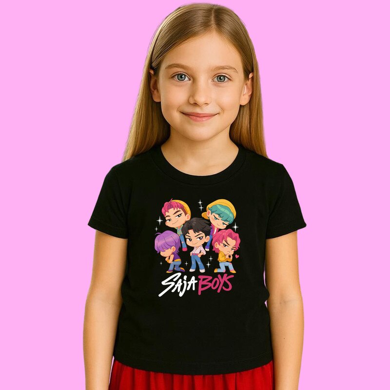 Tricou Copii Huntrix K Pop Hunters Demon Saja Boys Grup Chibi Colorat, Negru