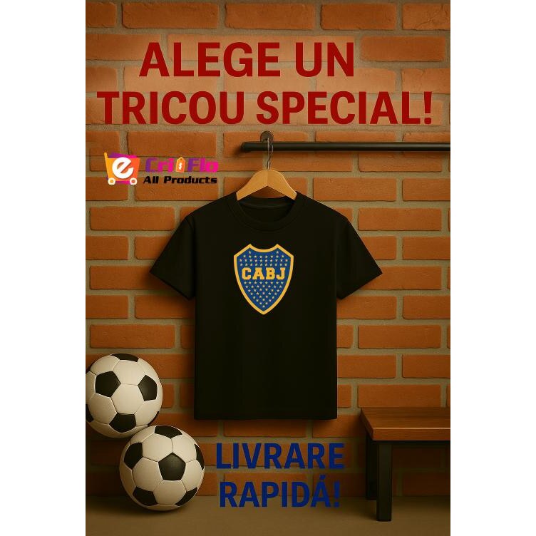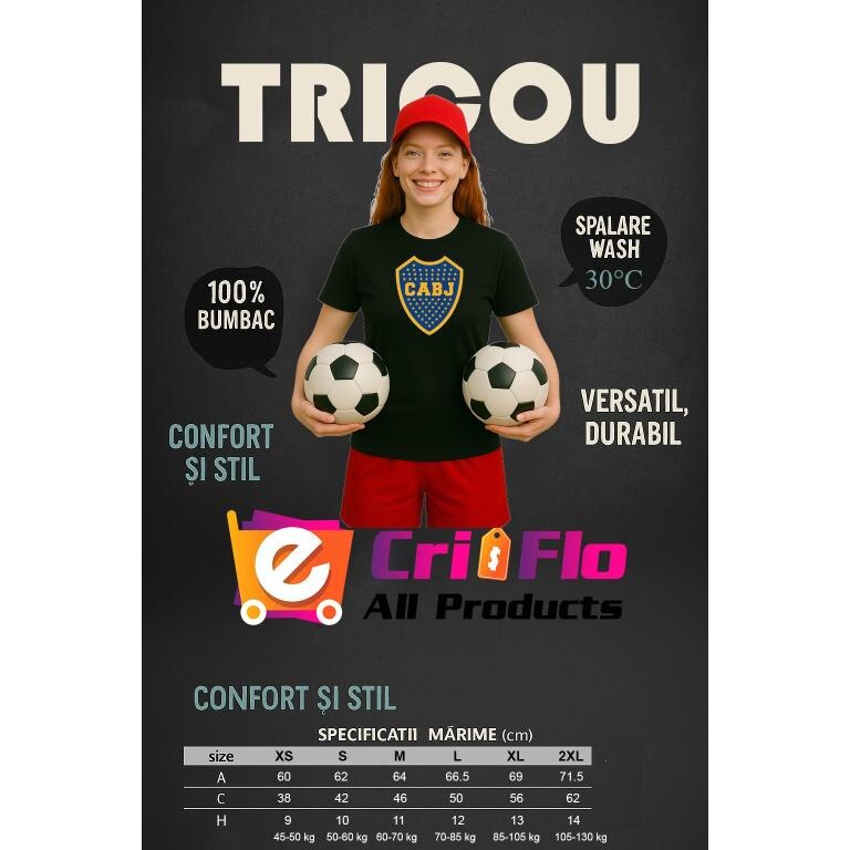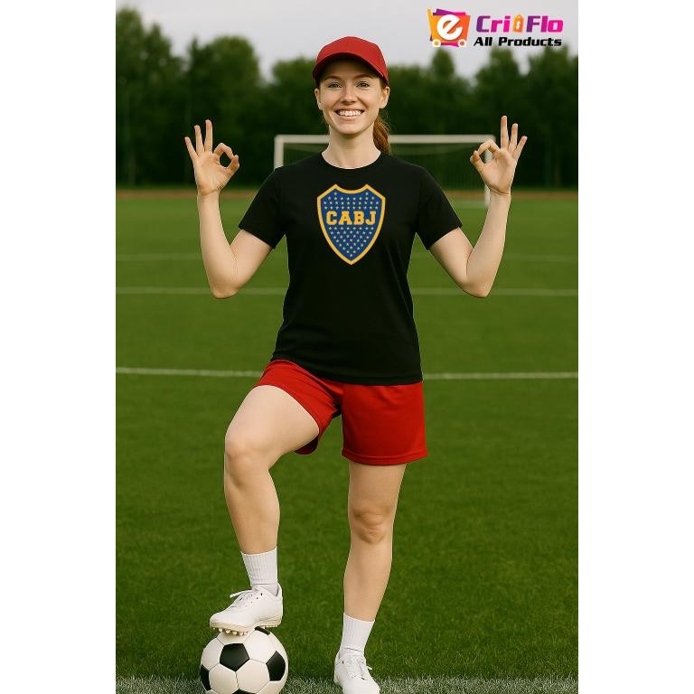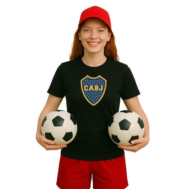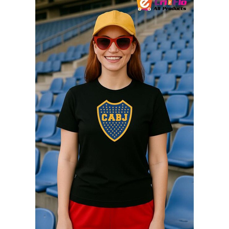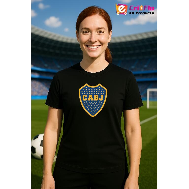 Tricou Dama cu stema/logo echipei de fotbal Boca Juniors Argentina, Cri-Flo, din bumbac 100%, Culoare Negru, Marime M