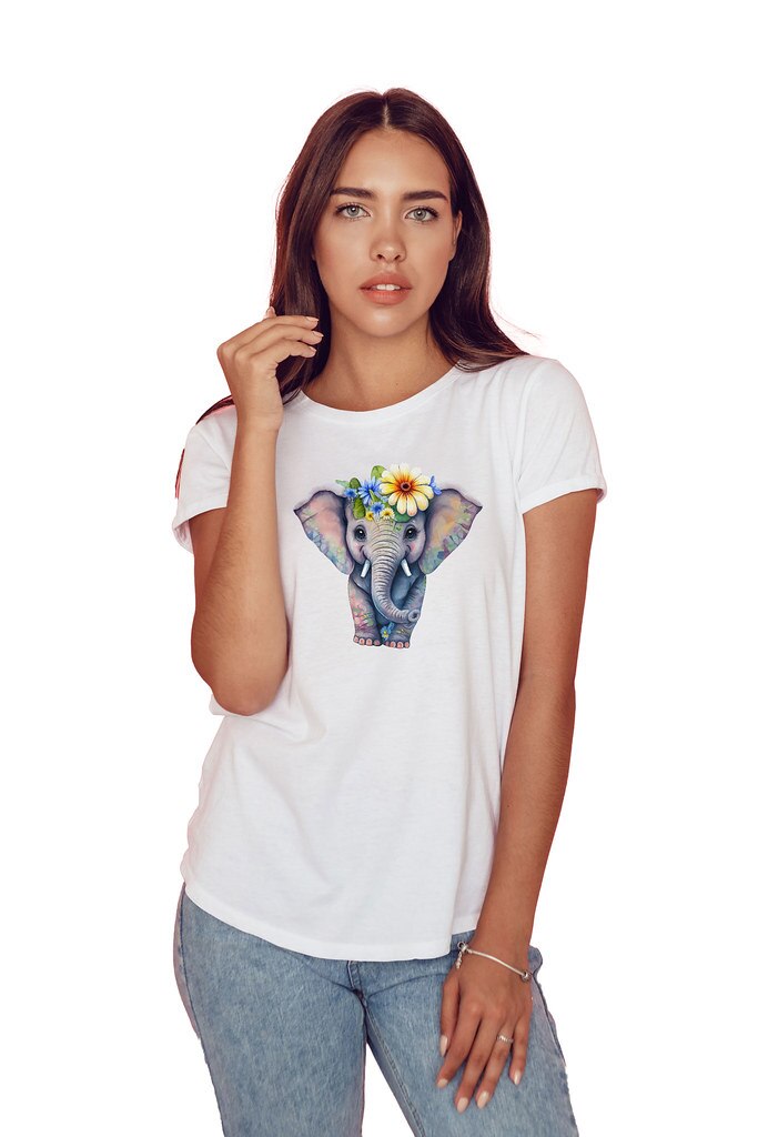 Tricou femei cu mesaj personalizat Baby elefant flower bumbac Oktane alb L