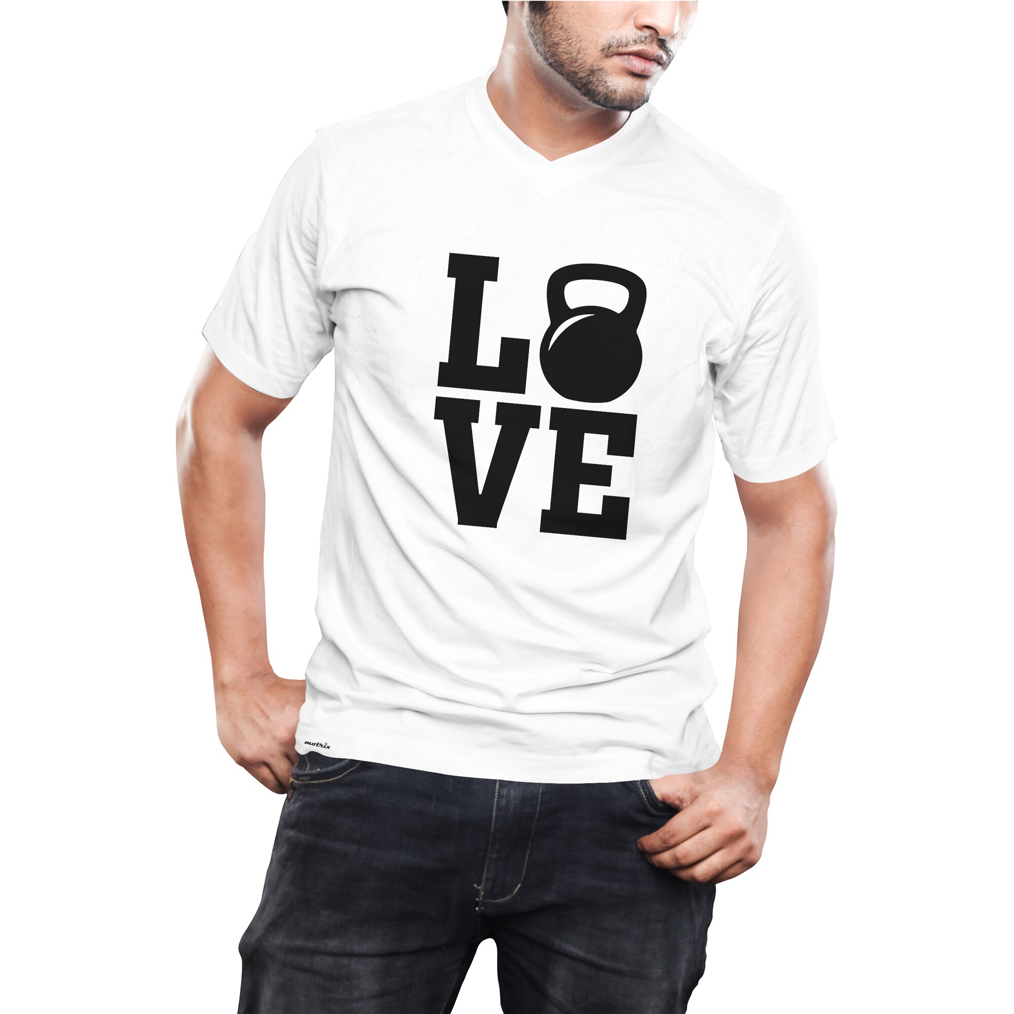 Tricou gym v-neck Love gym kettlebell alb L fitness
