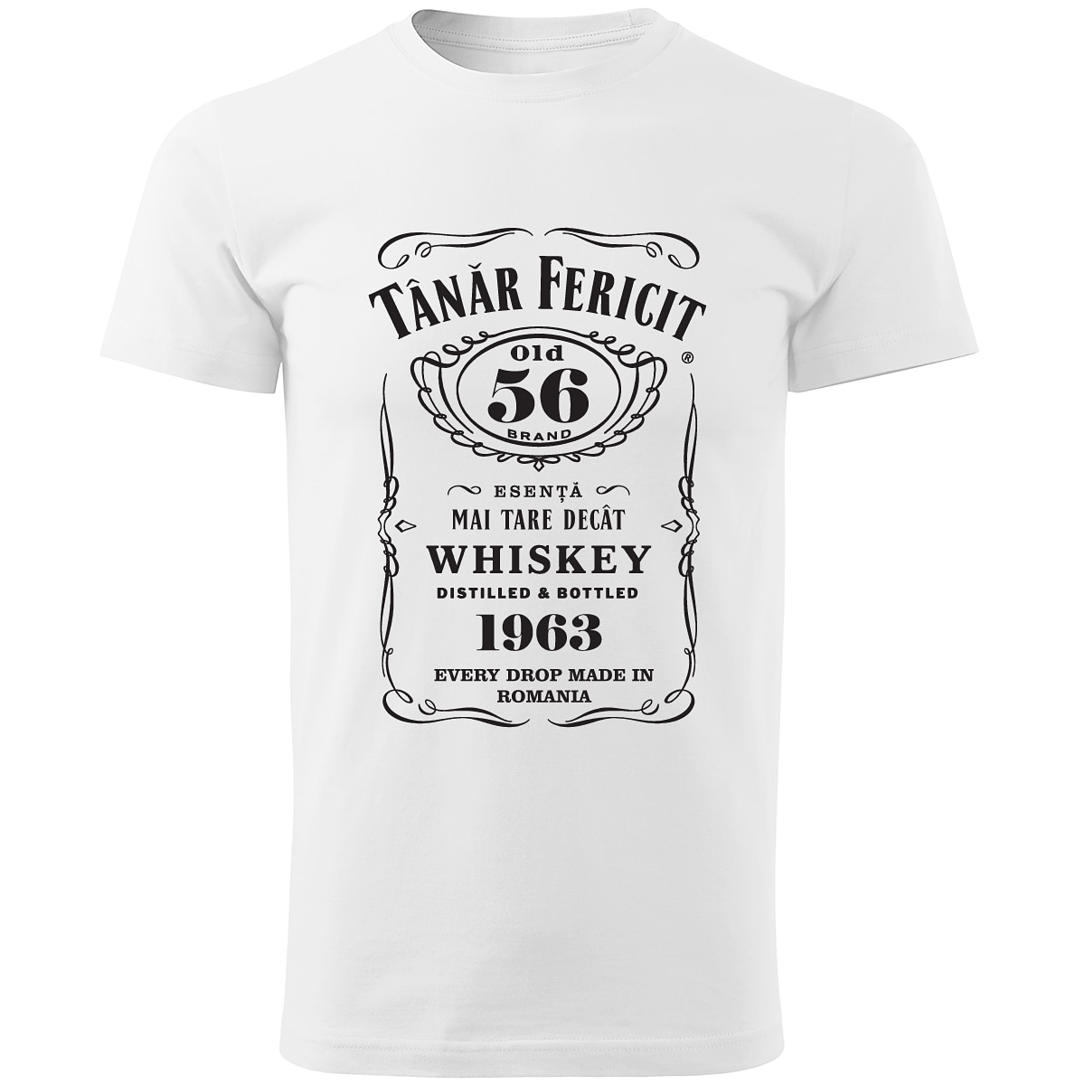 Tricou personalizat barbati, alb TANAR FERICIT VARSTA 56 DE ANI NASCUT IN 1963 marime XS