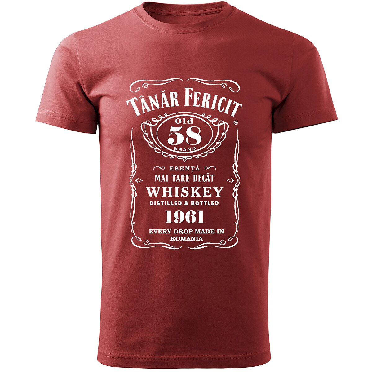 Tricou personalizat barbati, rosu TANAR FERICIT VARSTA 58 DE ANI NASCUT IN 1961 marime XS