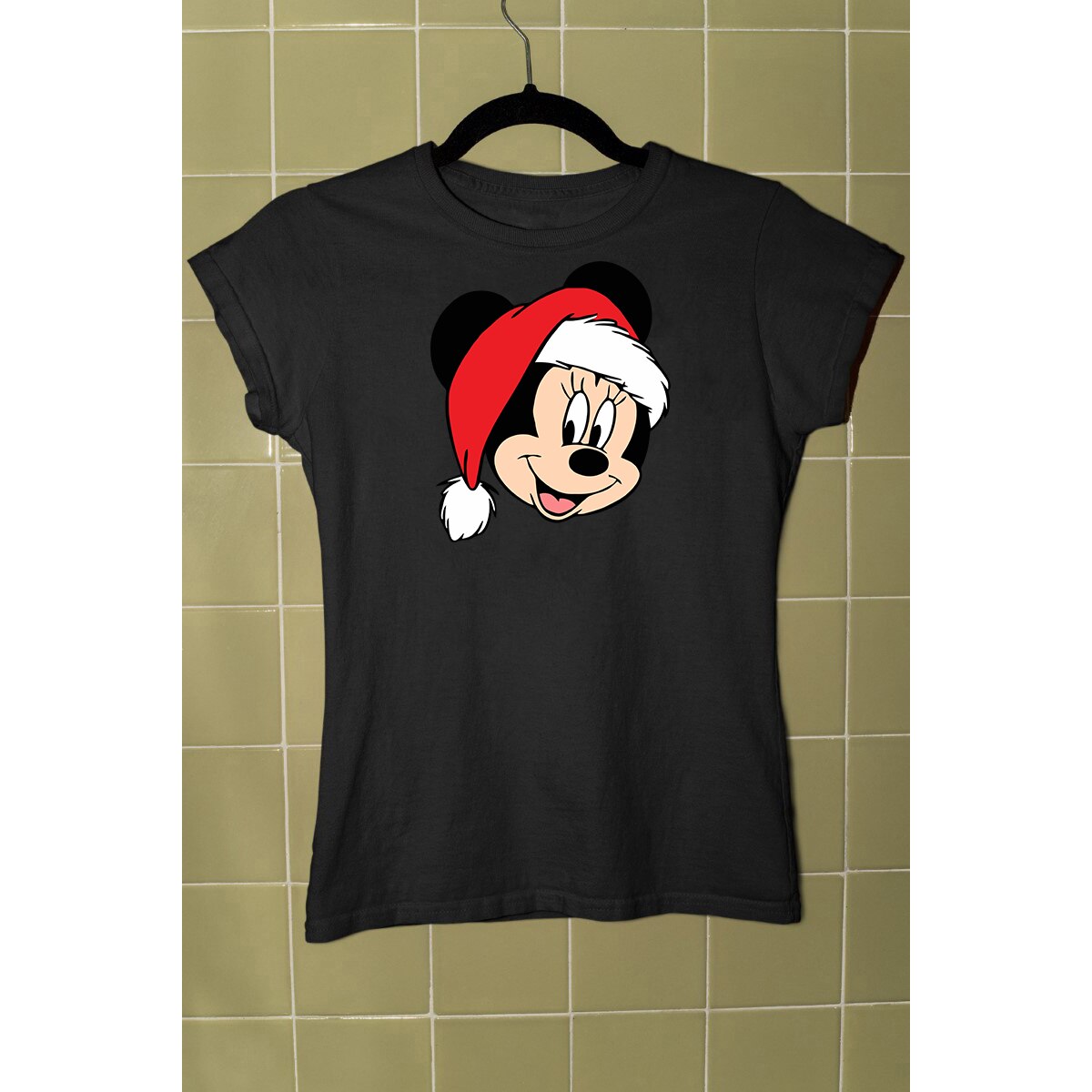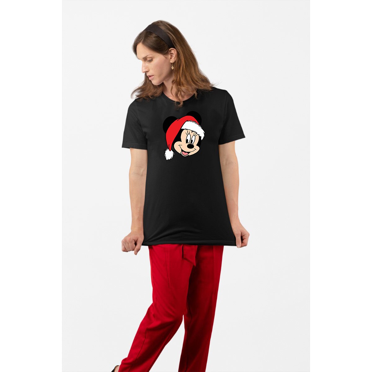 Tricou personalizat pentru dama cu imprimeu, Minnie Mouse - Editie de Craciun model 1, Bumbac, Negru, M