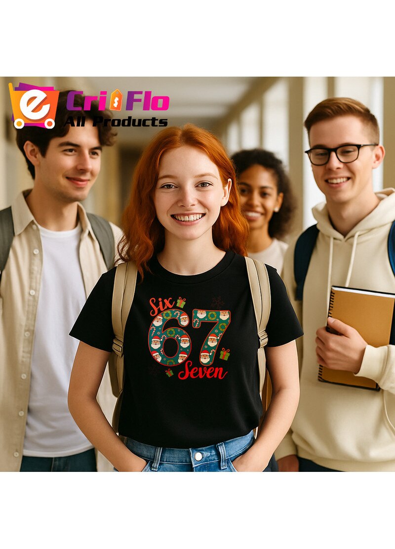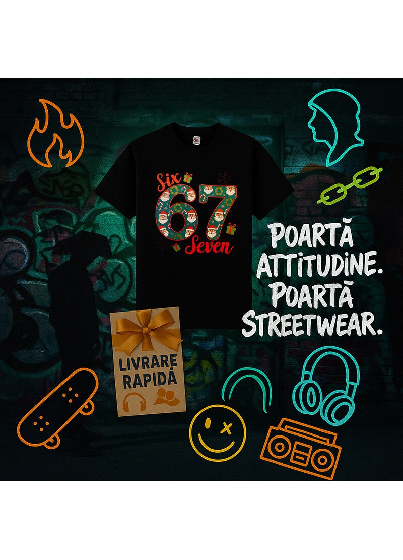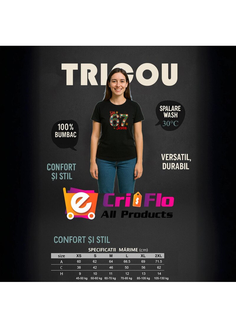 Tricou SIX SEVEN 67 Decor Craciun 2, Dama, 100% Bumbac, Cri-Flo, Culoare Negru, Marime L