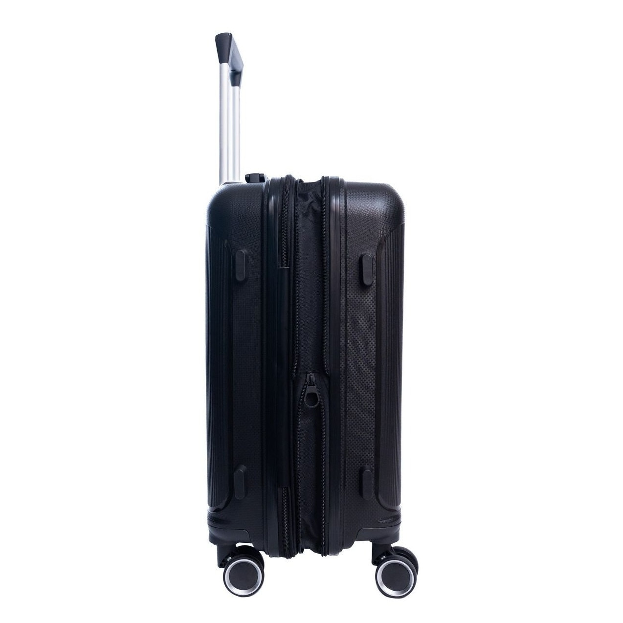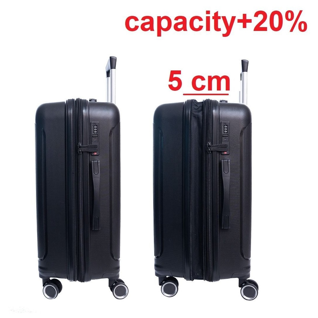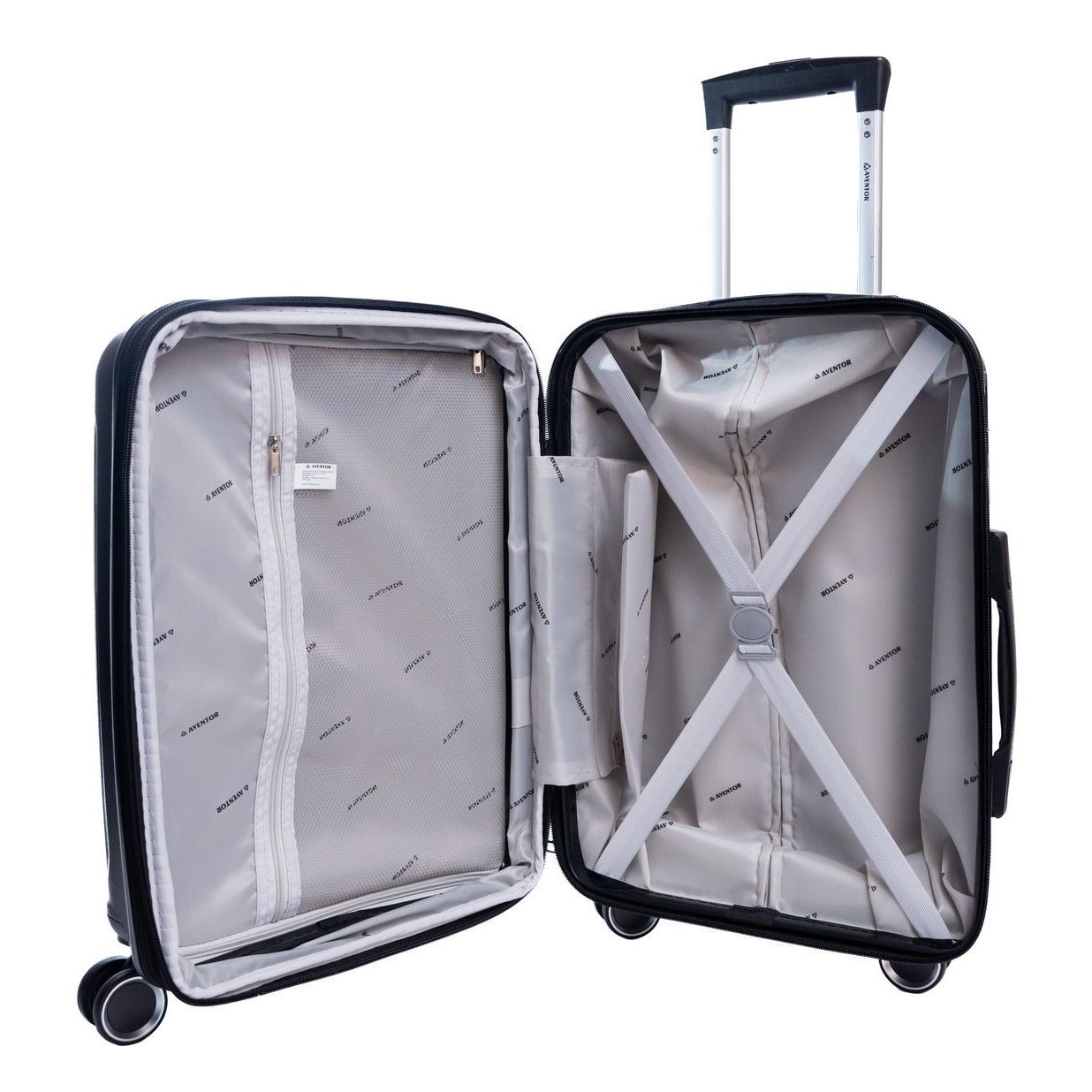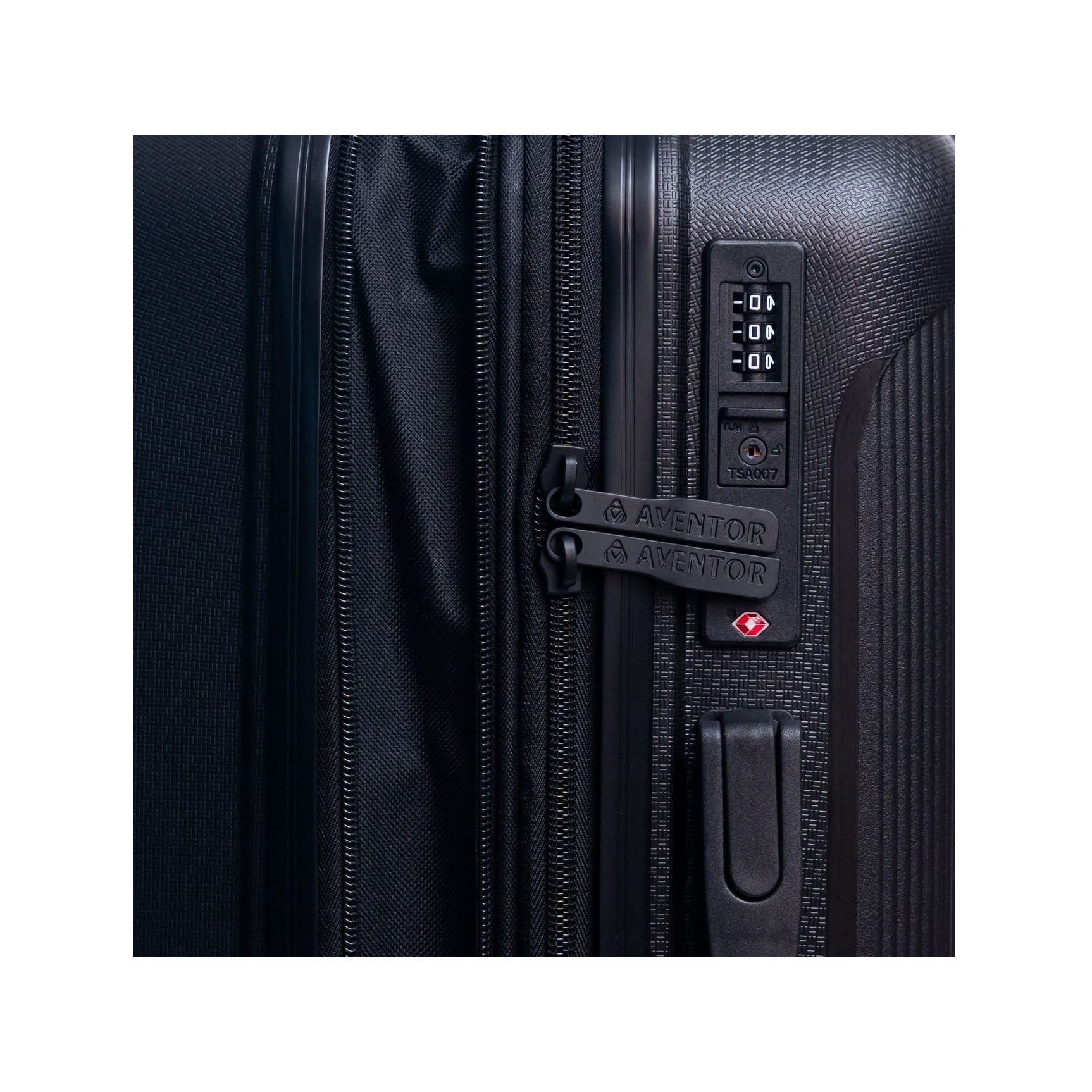 Troler de cabina extensibil Aventor AV101, 55x36x21.5 cm, bagaj de mana, polipropilena, +20% capacitate, fermoar antifurt, cifru TSA, negru