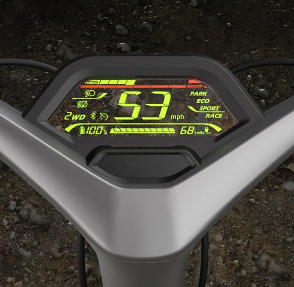 – Modul de condus selectat PARK-WALK-ECO-SPORT-RACE sau BOOST