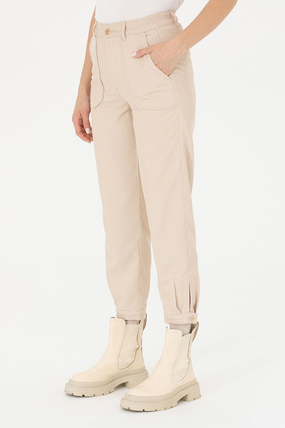 U.S. Polo Assn. - U.S. Polo Assn., Pantaloni crop de reiat, Bej deschis