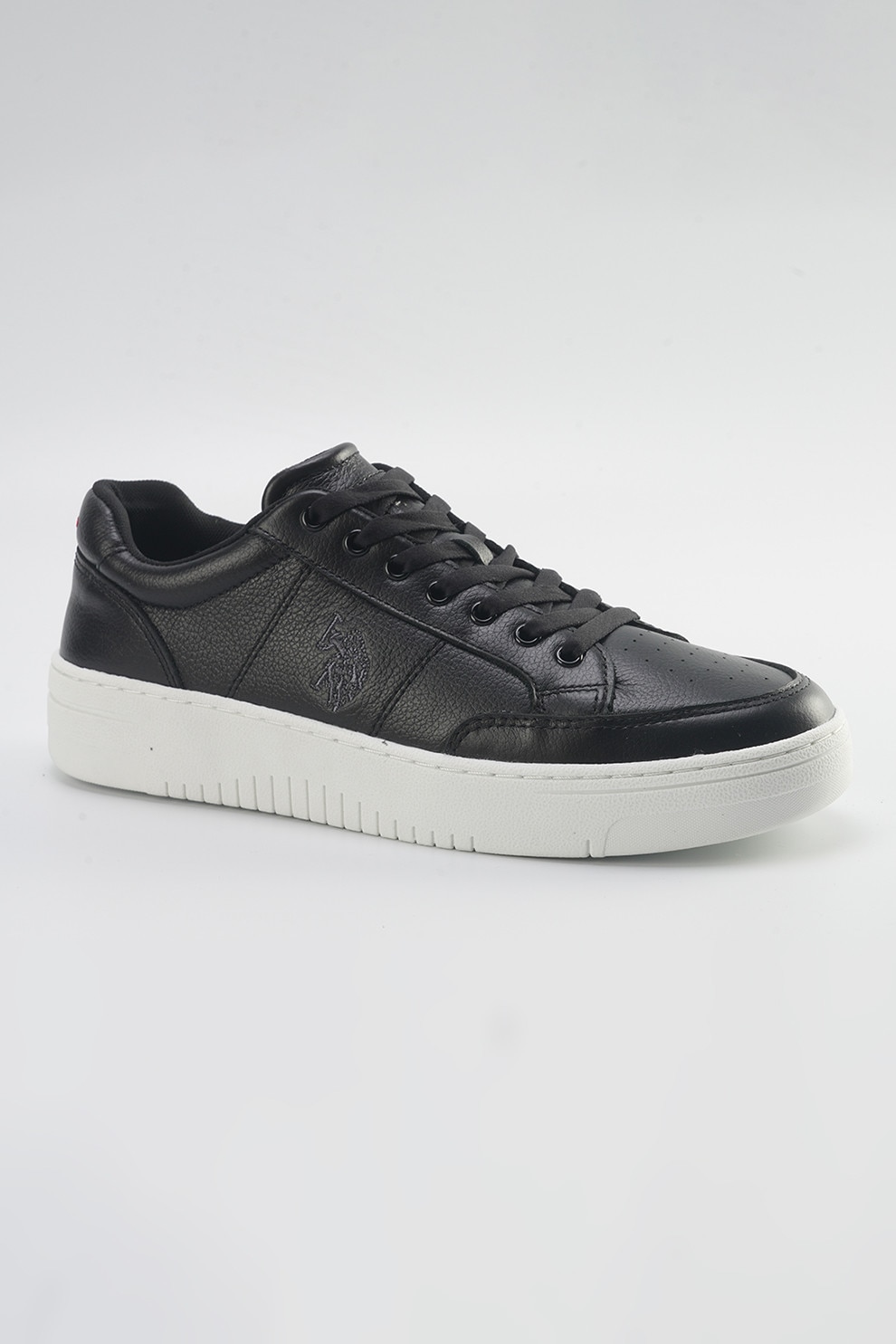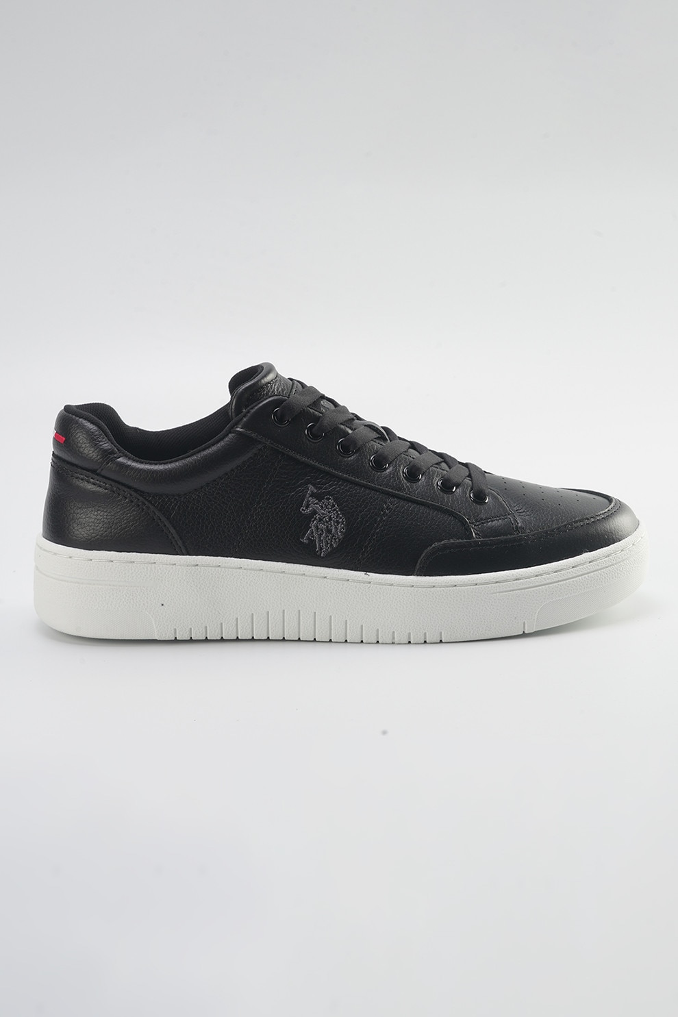 U.S. Polo Assn. - U.S. Polo Assn., Pantofi sport din piele cu perforatii decorative, Negru stins