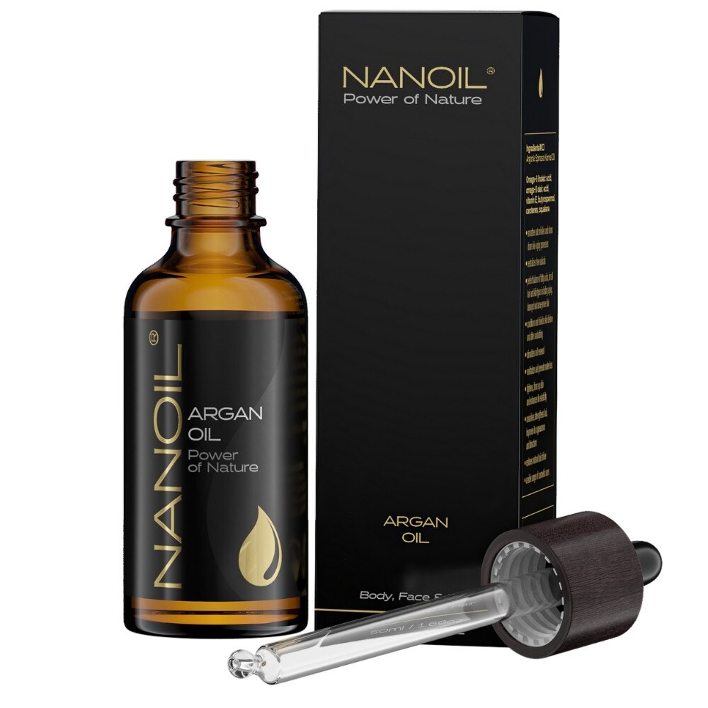 Uleiul de argan Nanoil este puterea naturii capturata intr-un recipient mic care va permite sa va ingrijiti pielea, parul si unghiile in fiecare zi, intr-un mod eficient. Este un ulei presat la rece, nerafinat si organic, extras din semintele de Argania. Peste 80% din ulei contine EFA-uri, acizi grasi esentiali care – impreuna cu squalena si vitamina E – hranesc, ingrijesc si infrumuseteaza zi de zi. Nanoil poate fi utilizat in numeroase moduri (pentru ingrijirea corpului, fetei, mainilor, unghiilor, parului si scalpului). Asigura protectie impotriva caldurii si soarelui, are un efect puternic de reparare, promoveaza reinnoirea celulara si imbunatateste stratul hidrolipidic, mentinand un nivel adecvat de hidratare. Folosit cu regularitate, intensifica finetea, stralucirea si netezimea pielii si, de asemenea, consolideaza si infrumuseteaza parul.