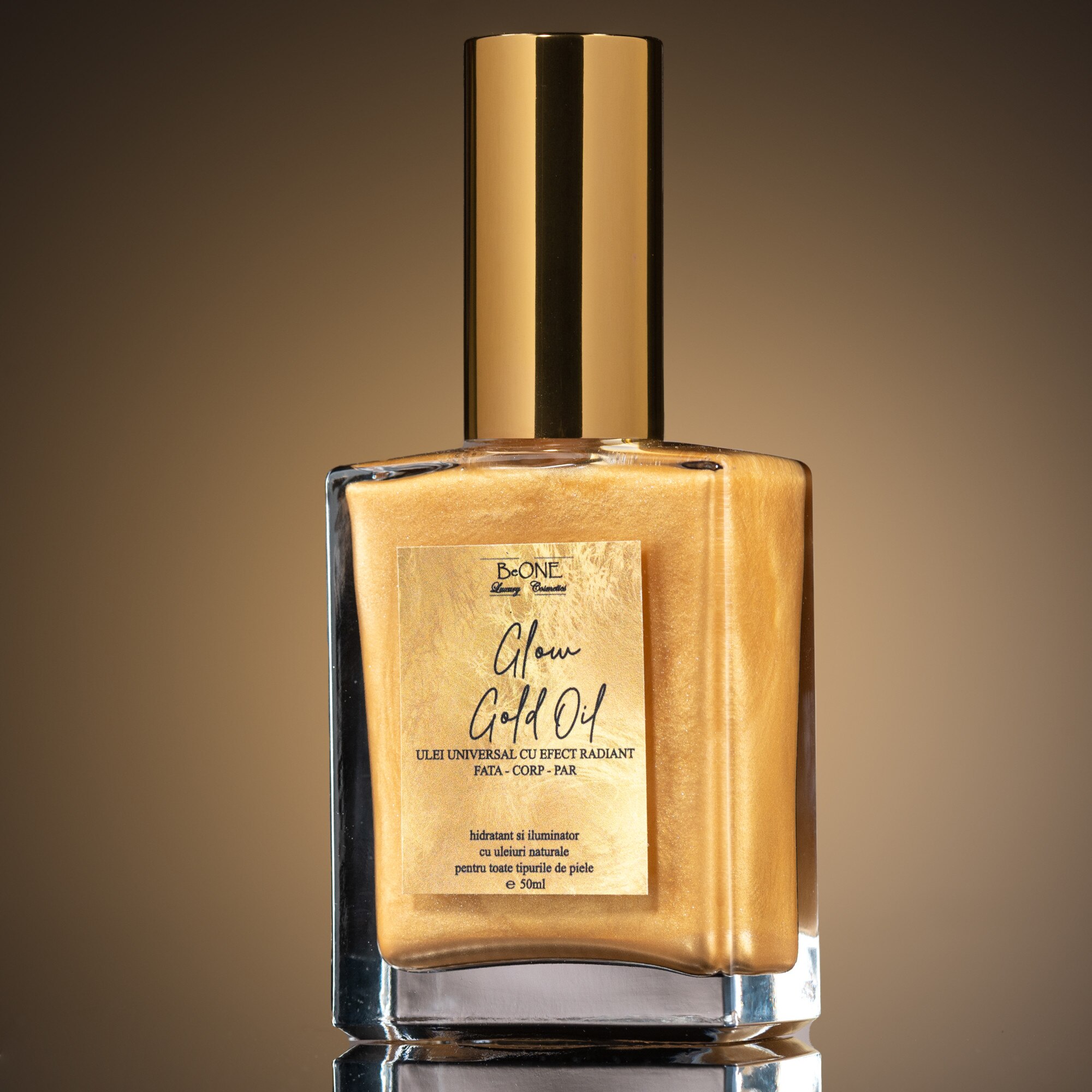 Ulei universal pentru corp, par, fata cu sclipici si efect nuantator Glow Gold Oil, Be One Cosmetics, 50 ml, natural handmade