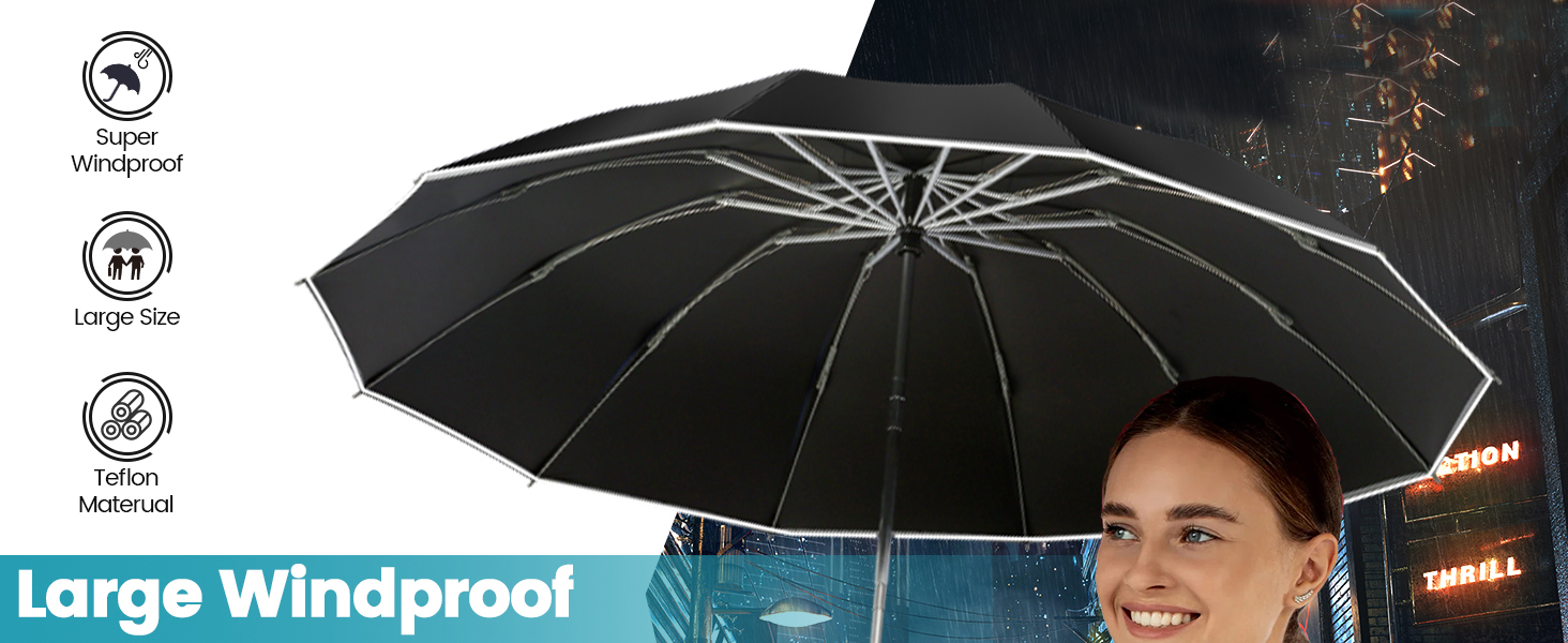 Umbrela dama, OVERTANG, Rezistenta la vant, Pliabila, 105cm, Negru
