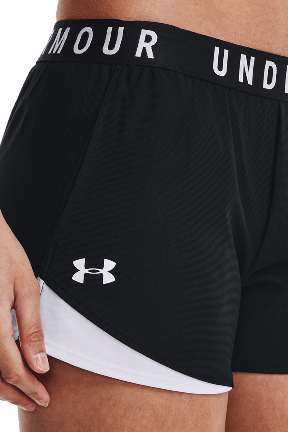 Under Armour - Pantaloni scurti pentru fitness Play Up 3.0, Negru, Alb murdar, S