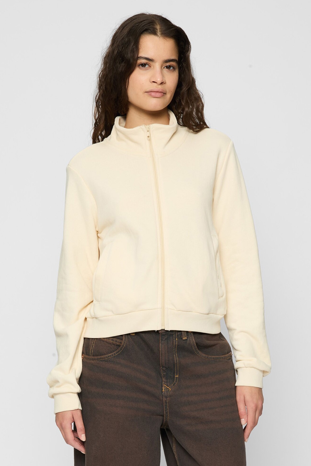 Urban Classics - Jacheta cu fermoar si buzunare laterale, Maro camel